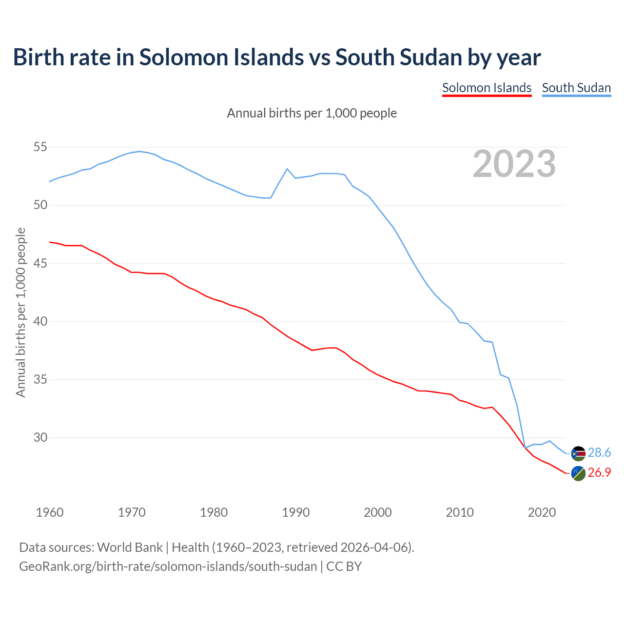 GeoRank.org/birth-rate/solomon-islands/south-sudan | CC BY