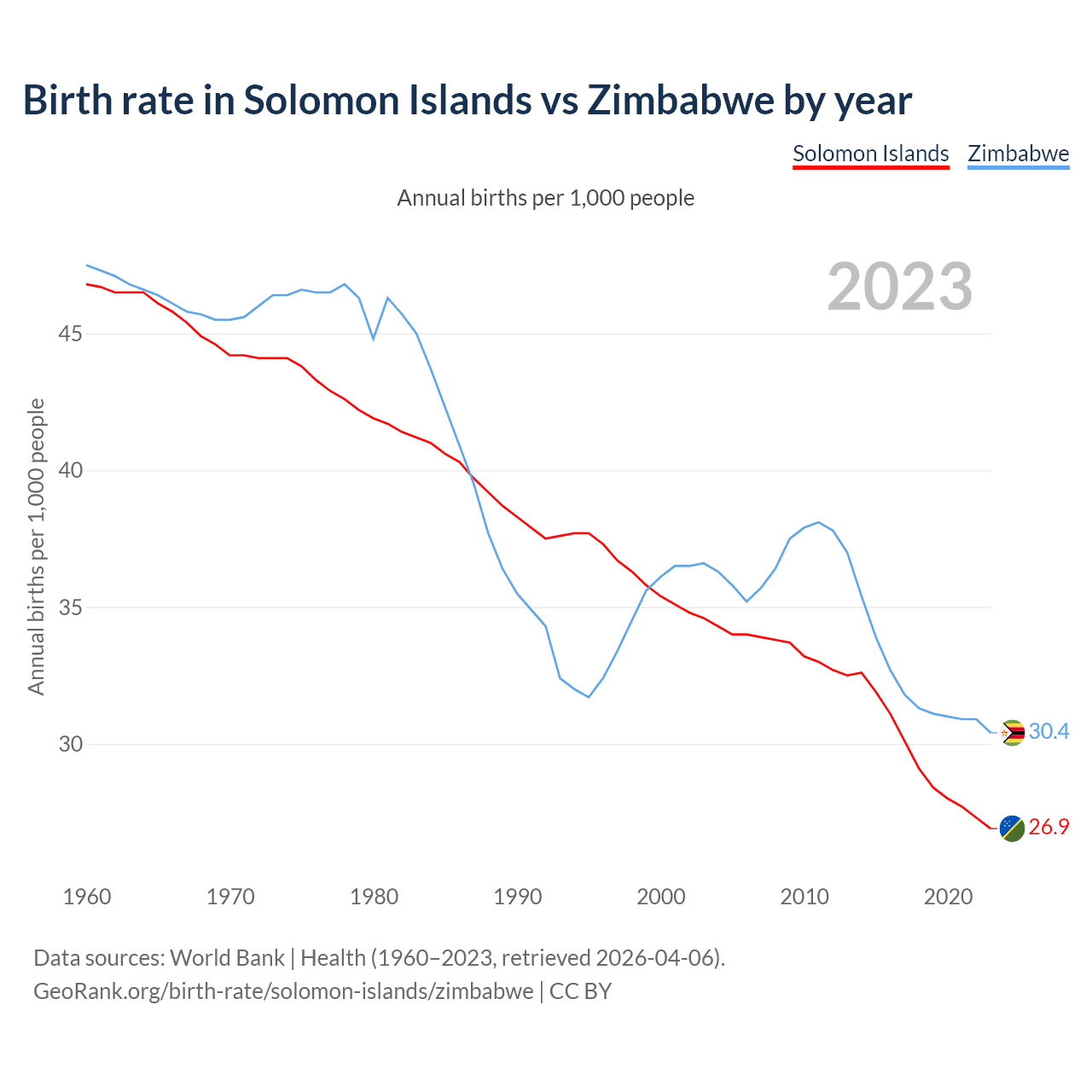 GeoRank.org/birth-rate/solomon-islands/zimbabwe | CC BY