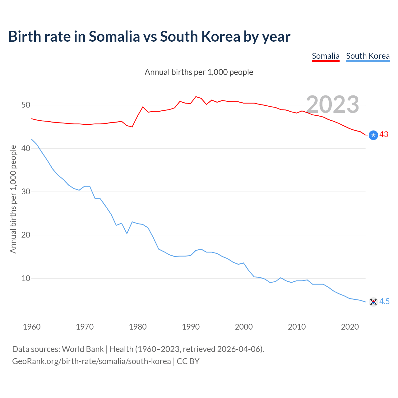 GeoRank.org/birth-rate/somalia/south-korea | CC BY