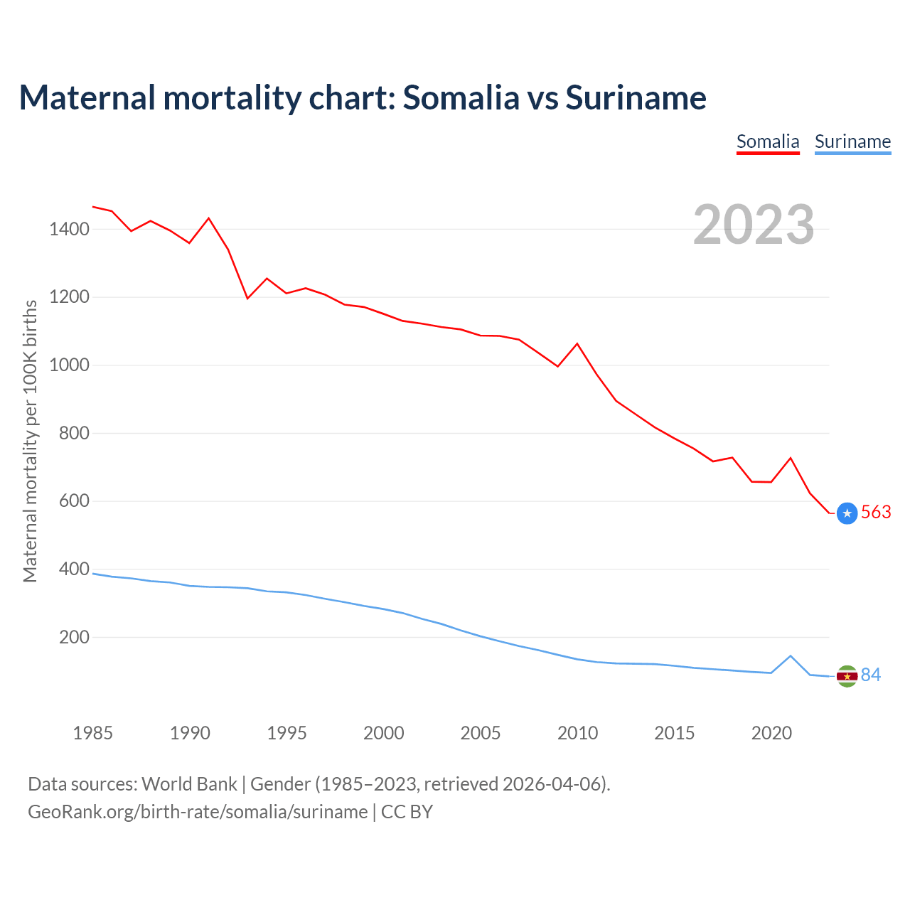 Maternal mortality chart: Somalia vs Suriname