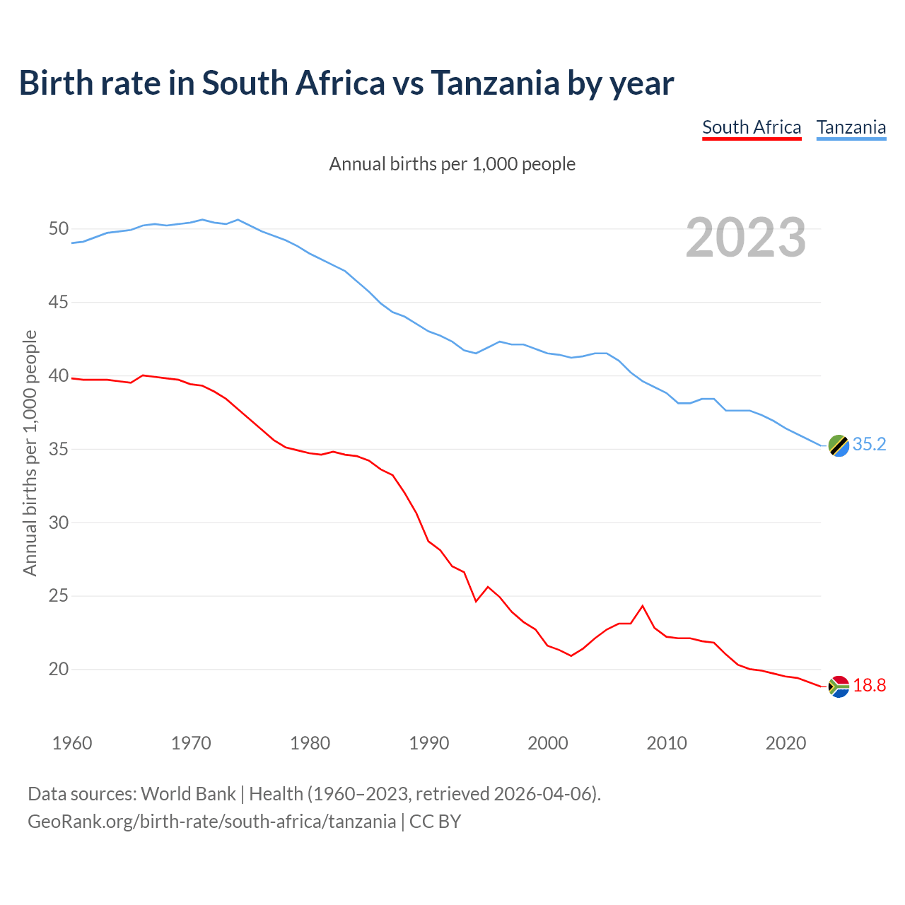 GeoRank.org/birth-rate/south-africa/tanzania | CC BY