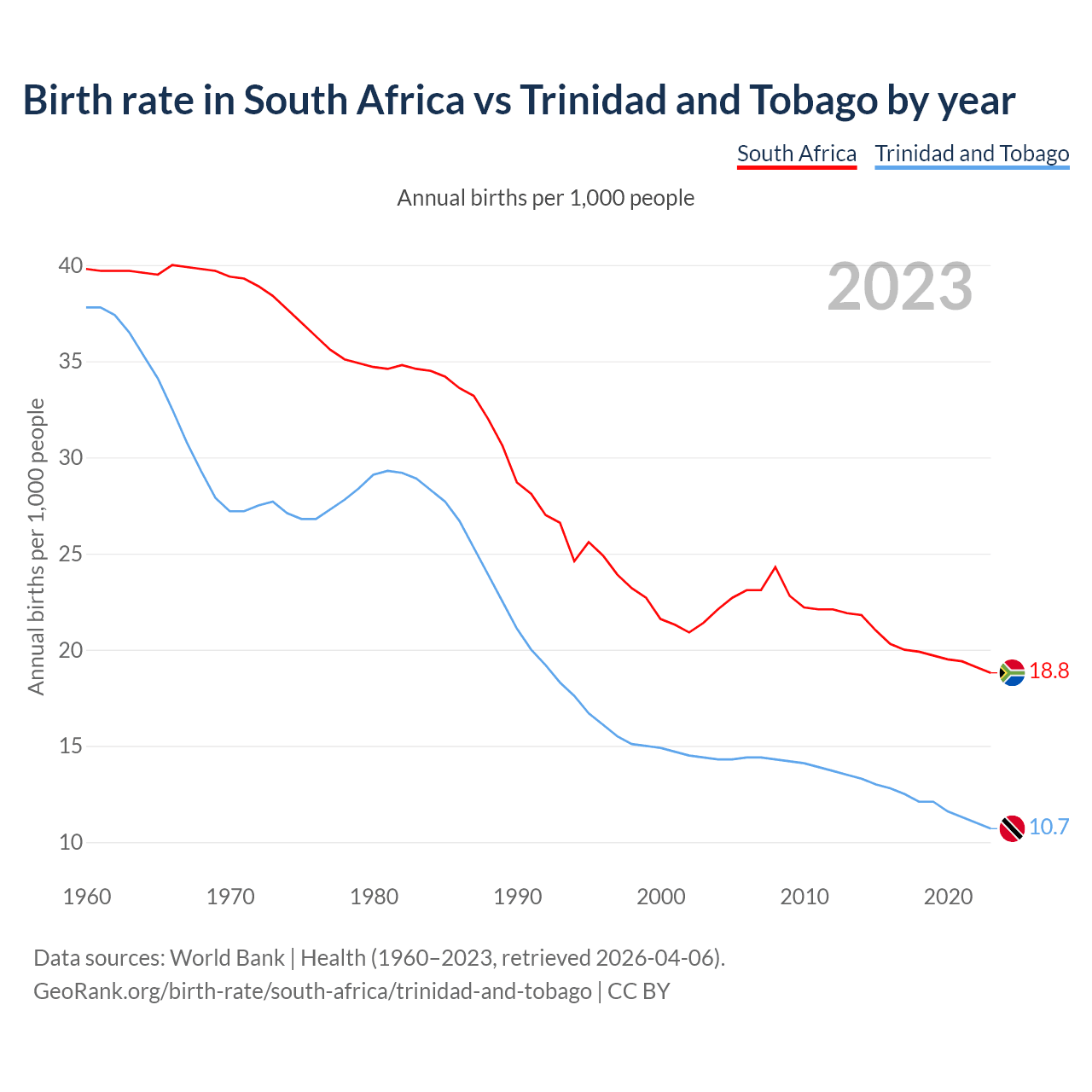 GeoRank.org/birth-rate/south-africa/trinidad-and-tobago | CC BY