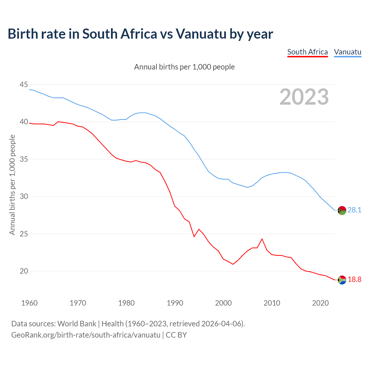 GeoRank.org/birth-rate/south-africa/vanuatu | CC BY