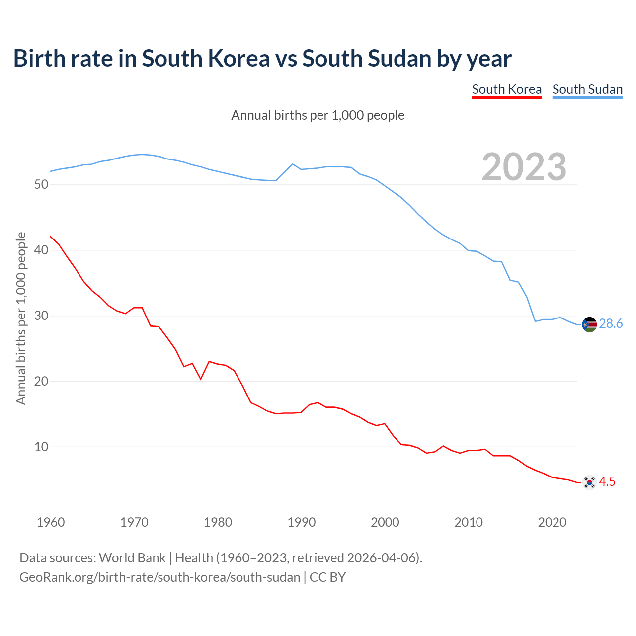 GeoRank.org/birth-rate/south-korea/south-sudan | CC BY