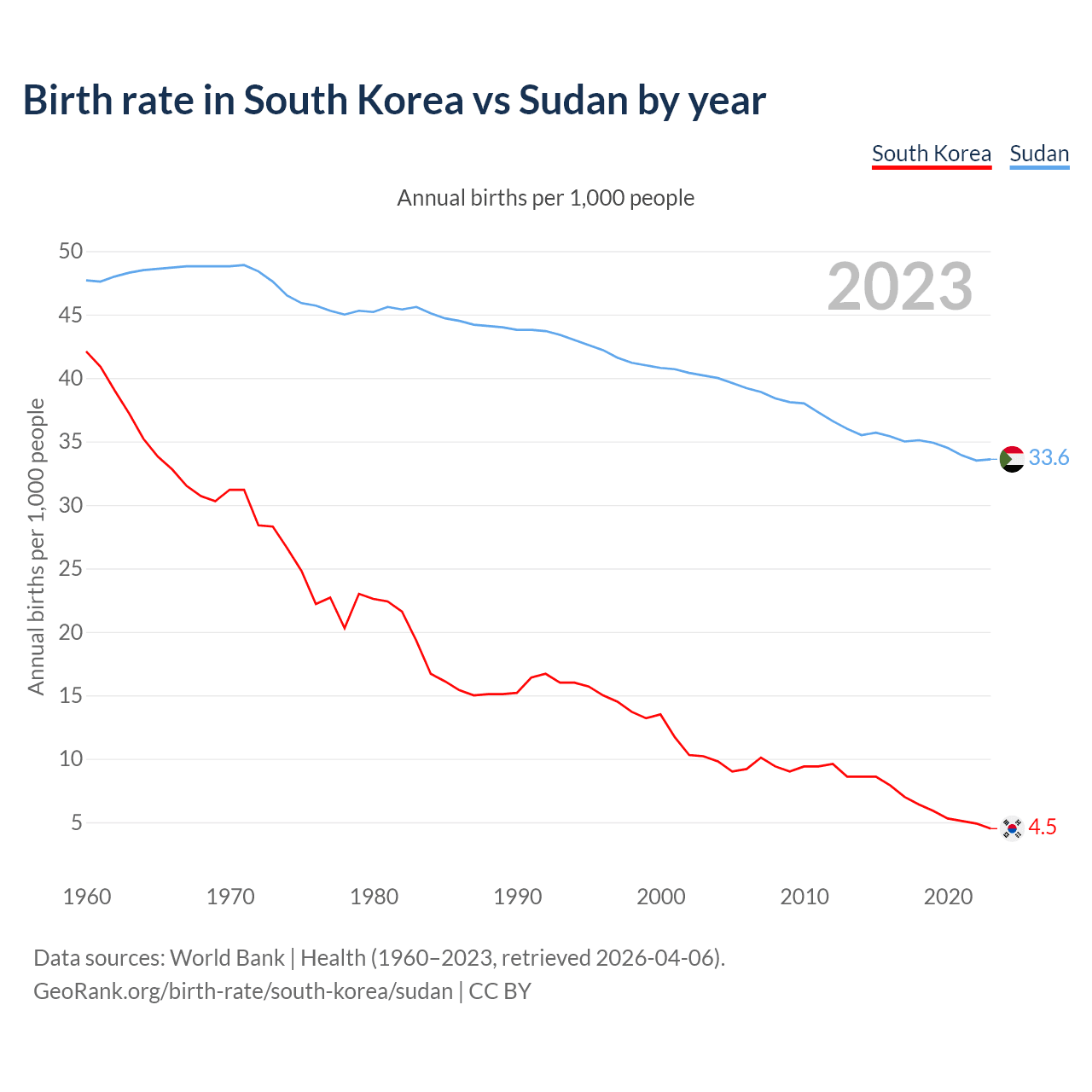 GeoRank.org/birth-rate/south-korea/sudan | CC BY