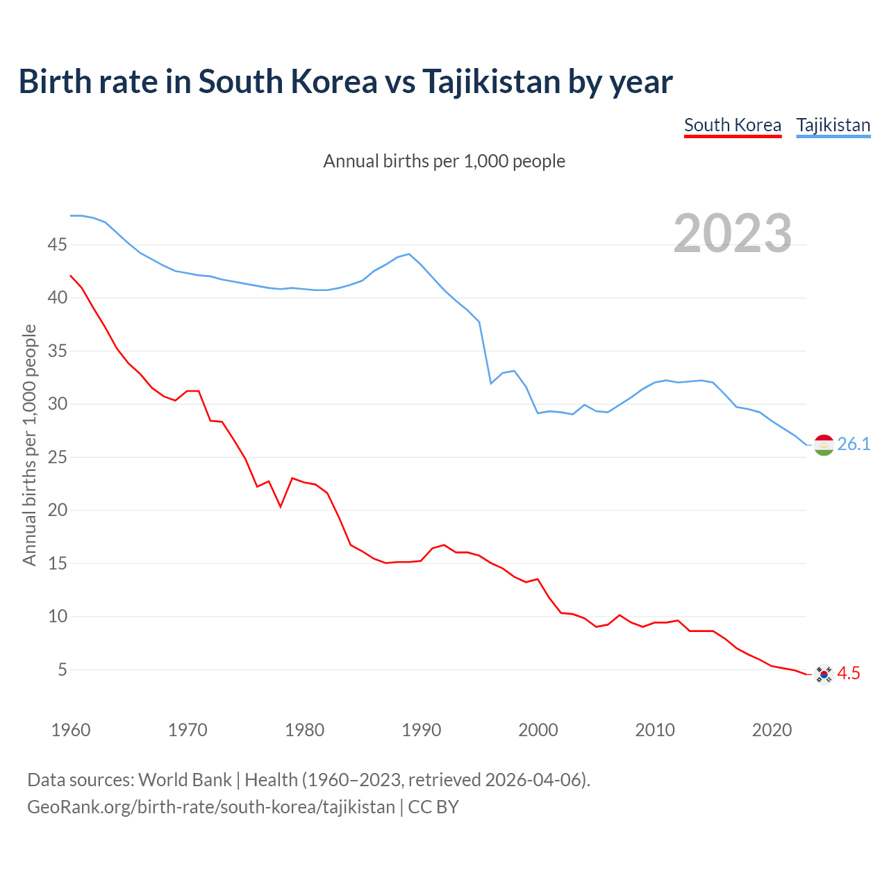 GeoRank.org/birth-rate/south-korea/tajikistan | CC BY