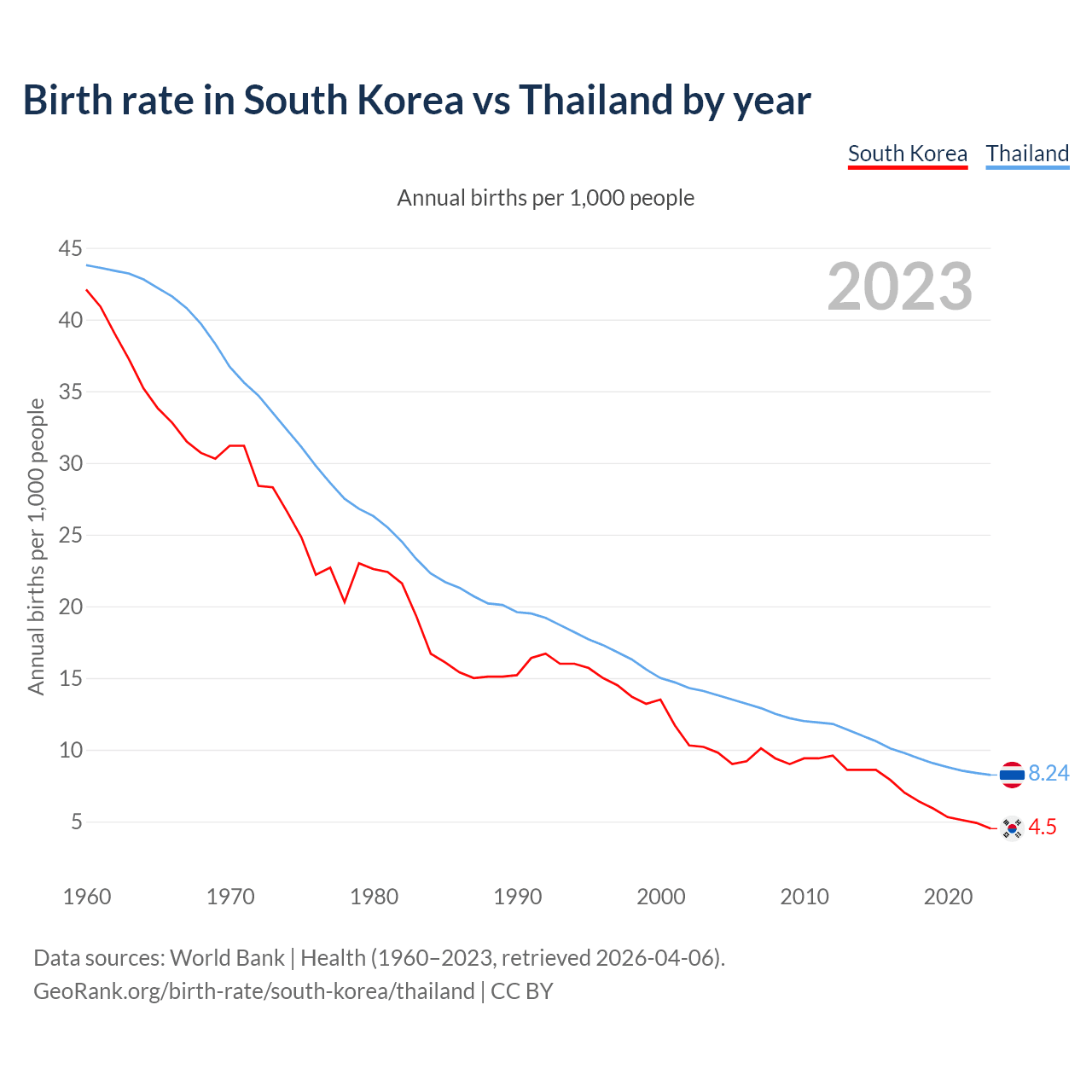 GeoRank.org/birth-rate/south-korea/thailand | CC BY