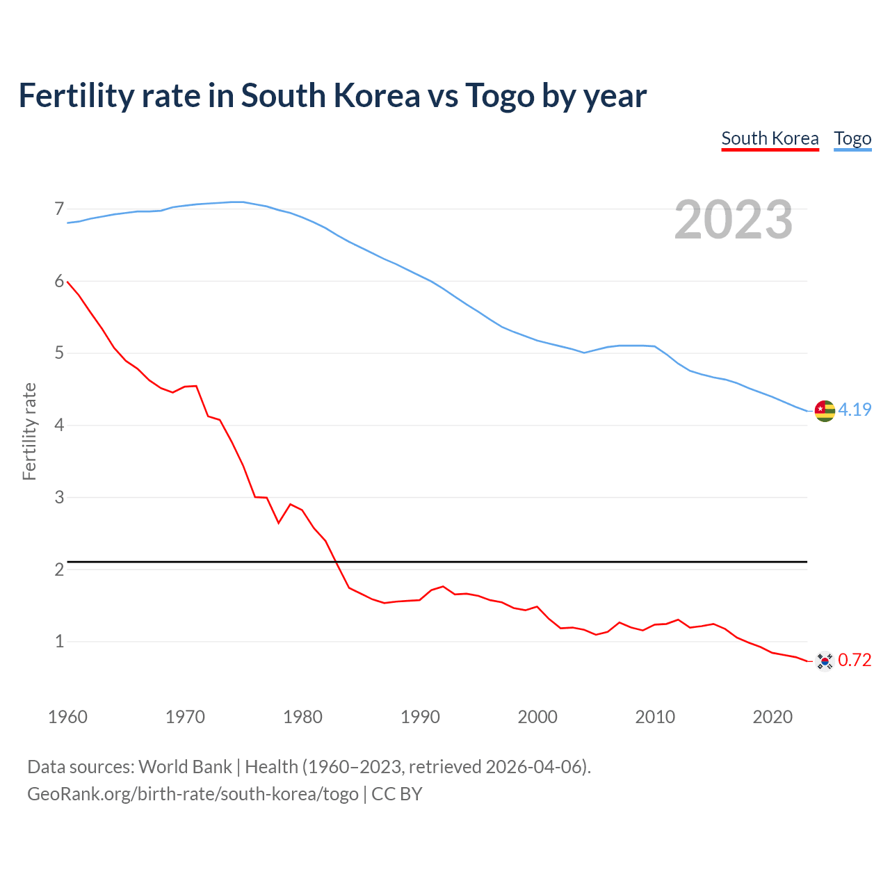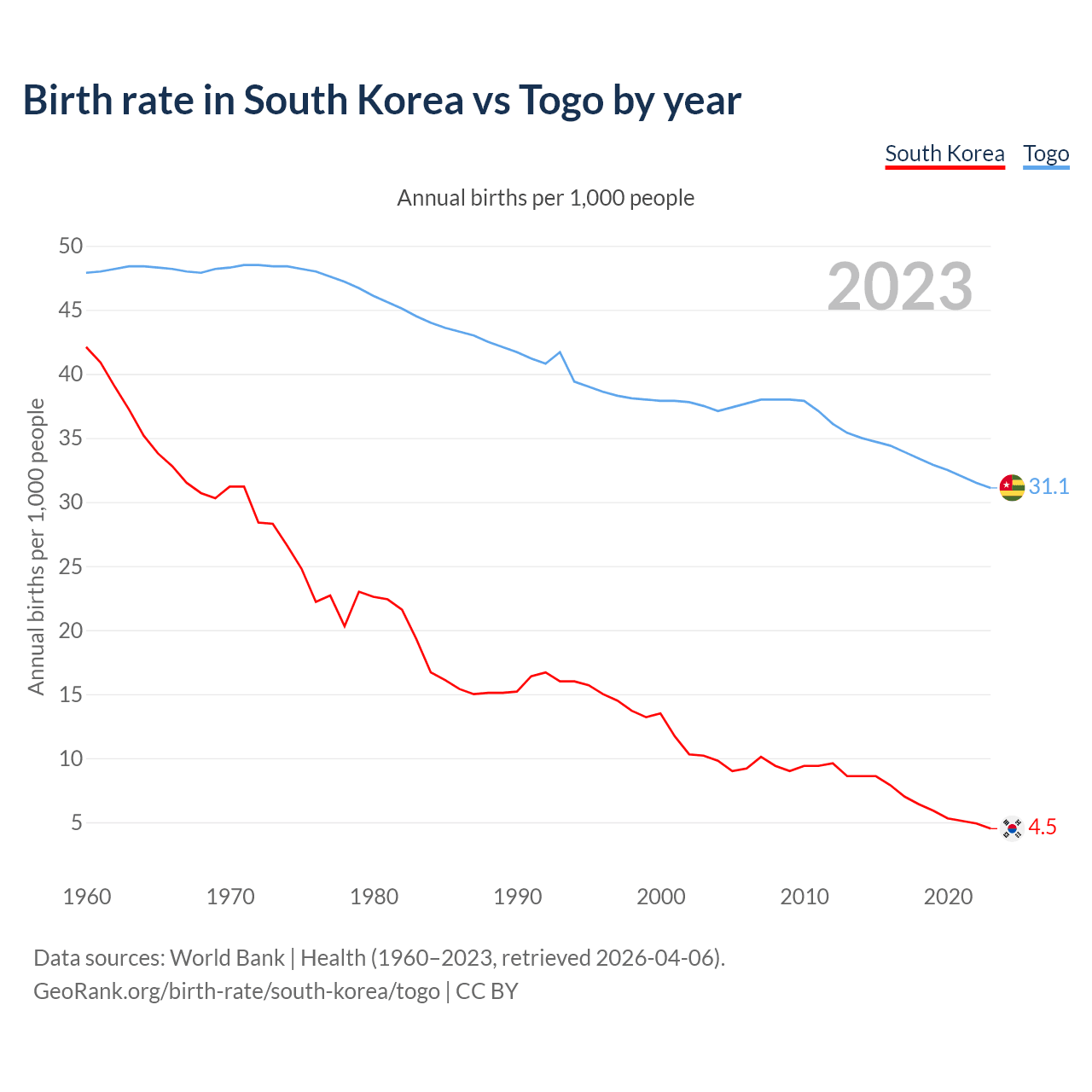 GeoRank.org/birth-rate/south-korea/togo | CC BY