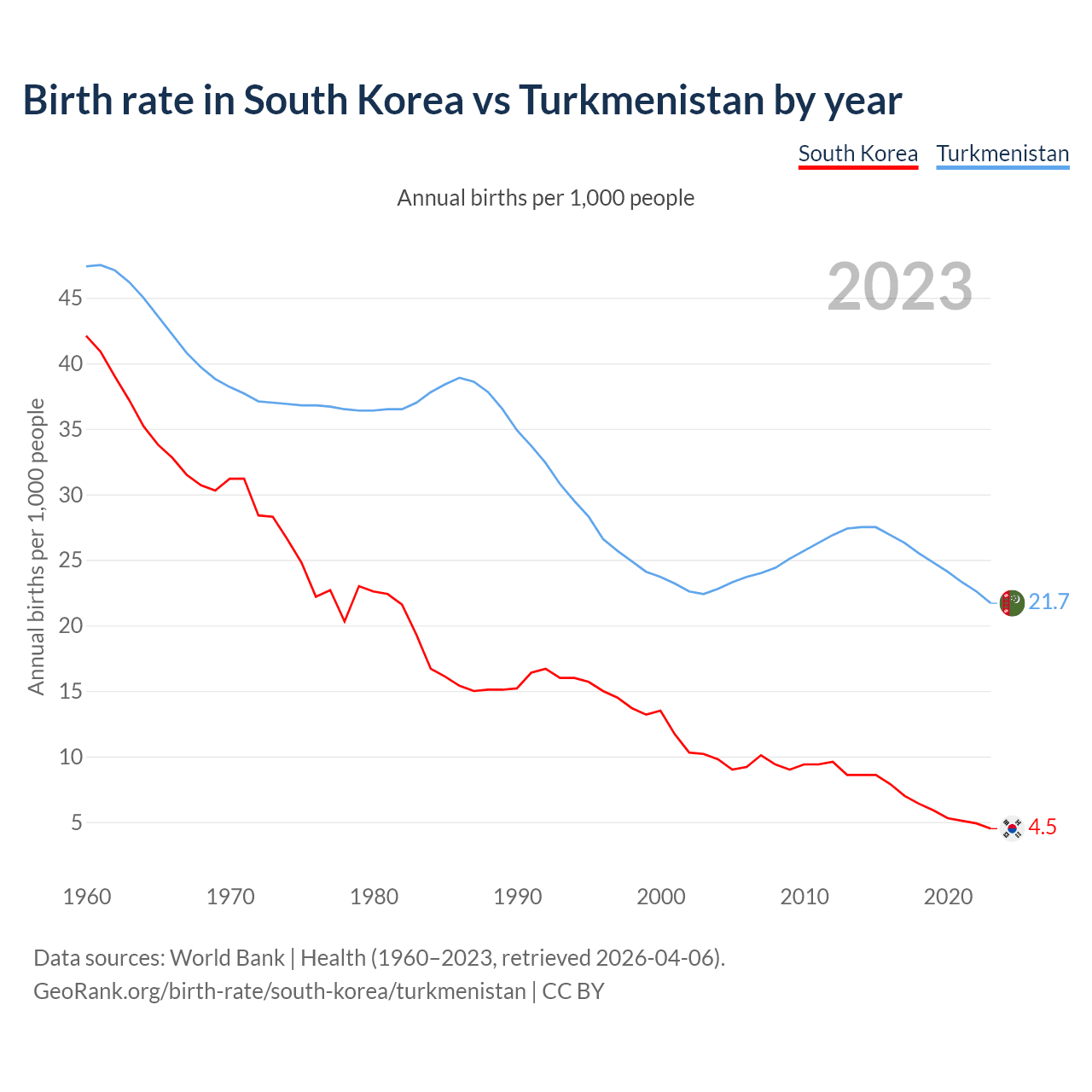 GeoRank.org/birth-rate/south-korea/turkmenistan | CC BY