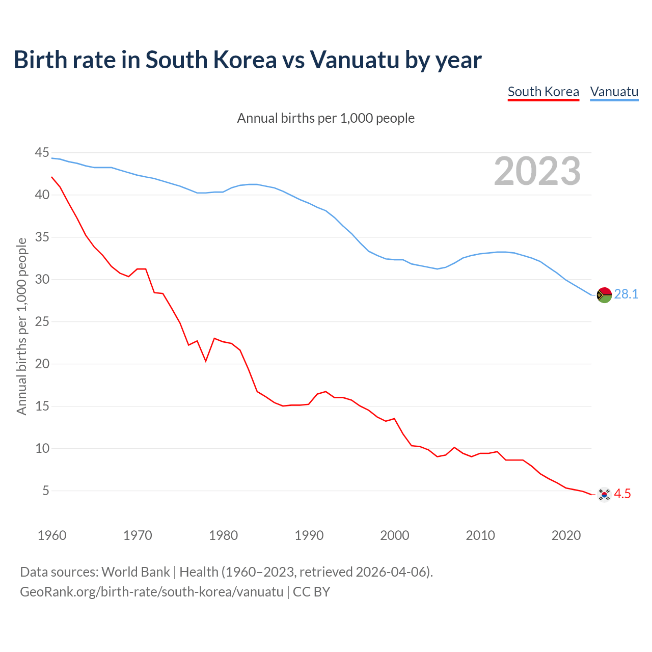 GeoRank.org/birth-rate/south-korea/vanuatu | CC BY