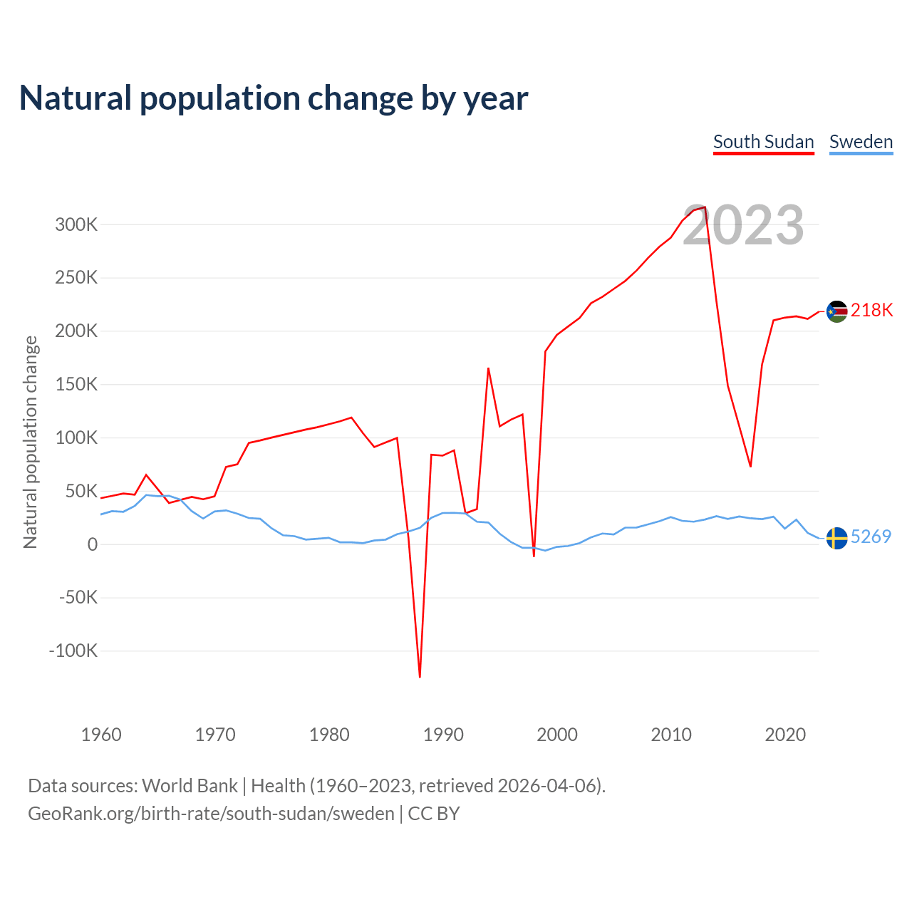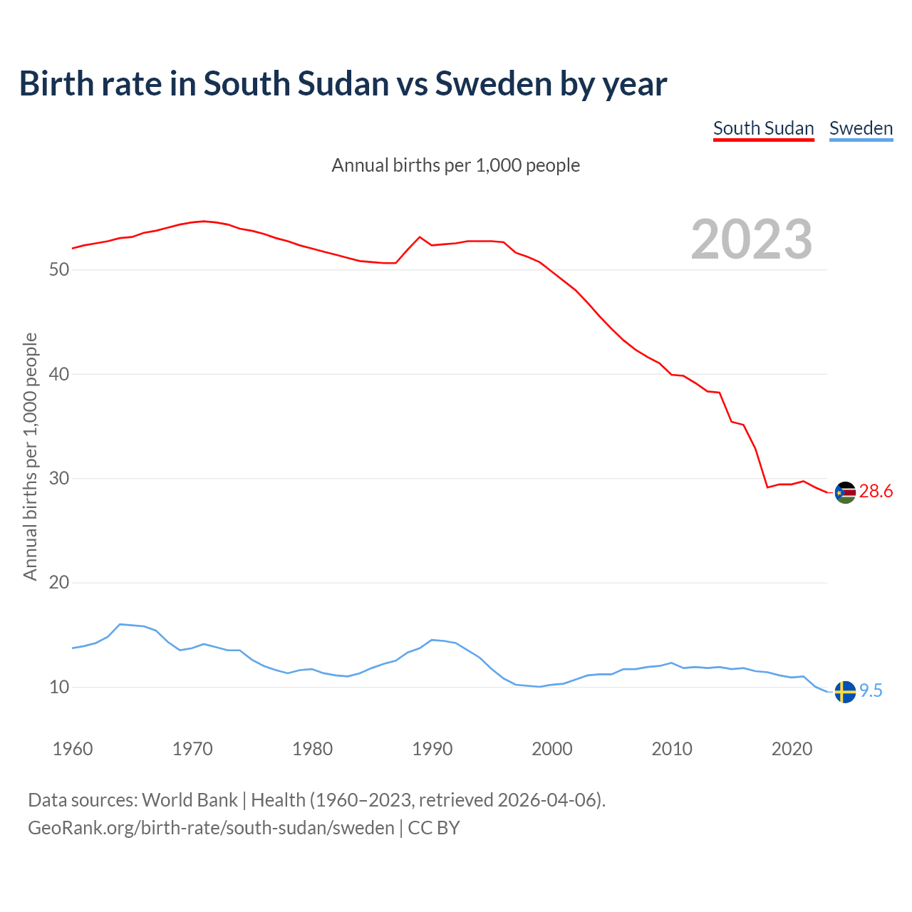 GeoRank.org/birth-rate/south-sudan/sweden | CC BY