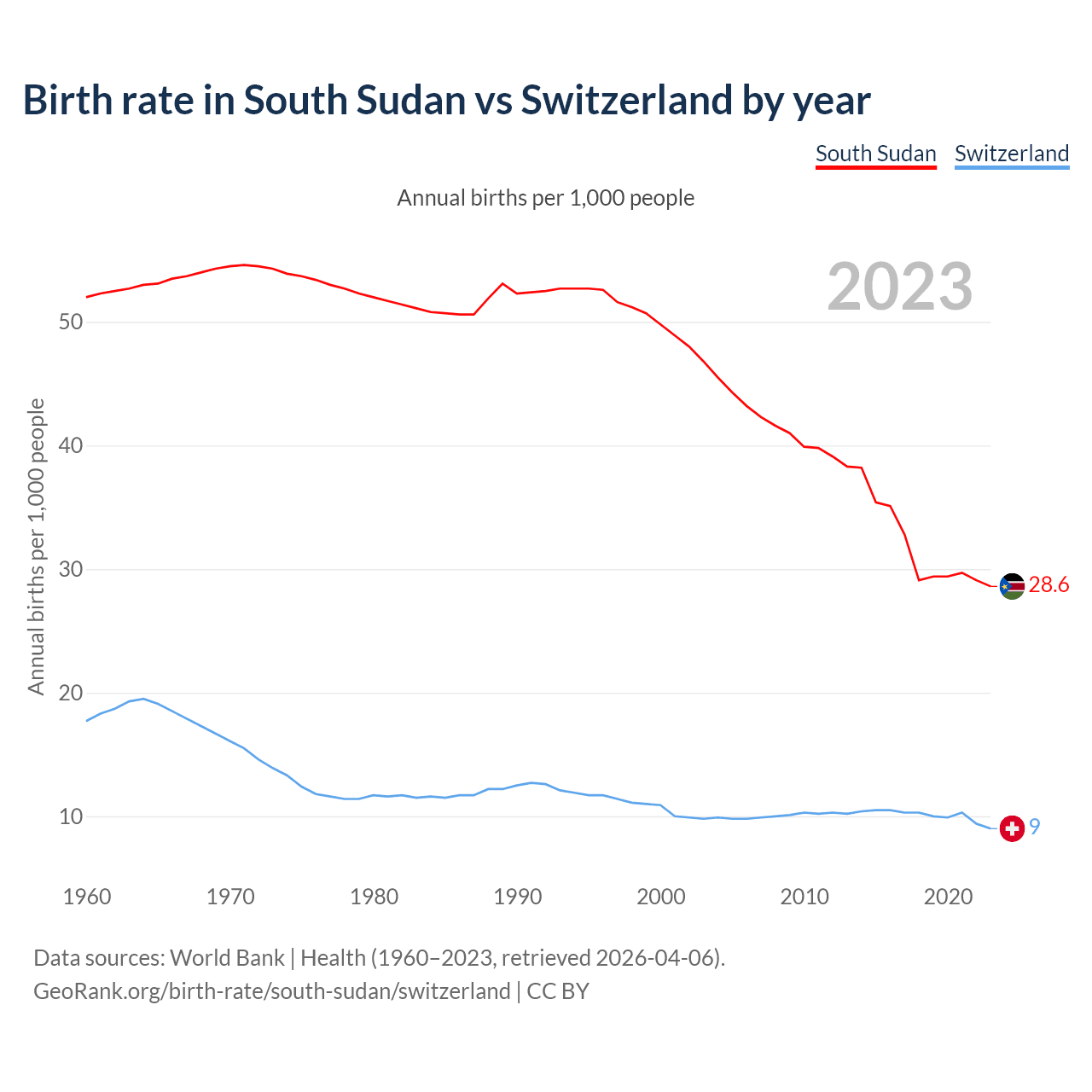 GeoRank.org/birth-rate/south-sudan/switzerland | CC BY