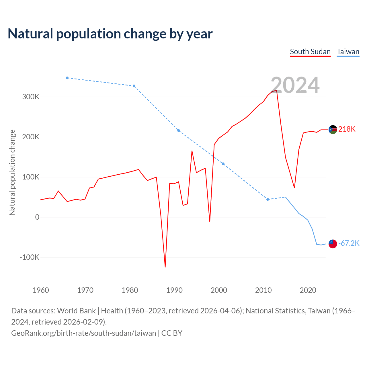 GeoRank.org/birth-rate/south-sudan/taiwan | CC BY