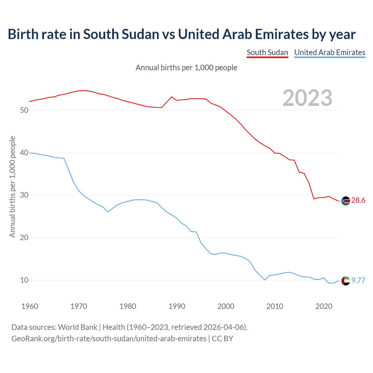 GeoRank.org/birth-rate/south-sudan/united-arab-emirates | CC BY