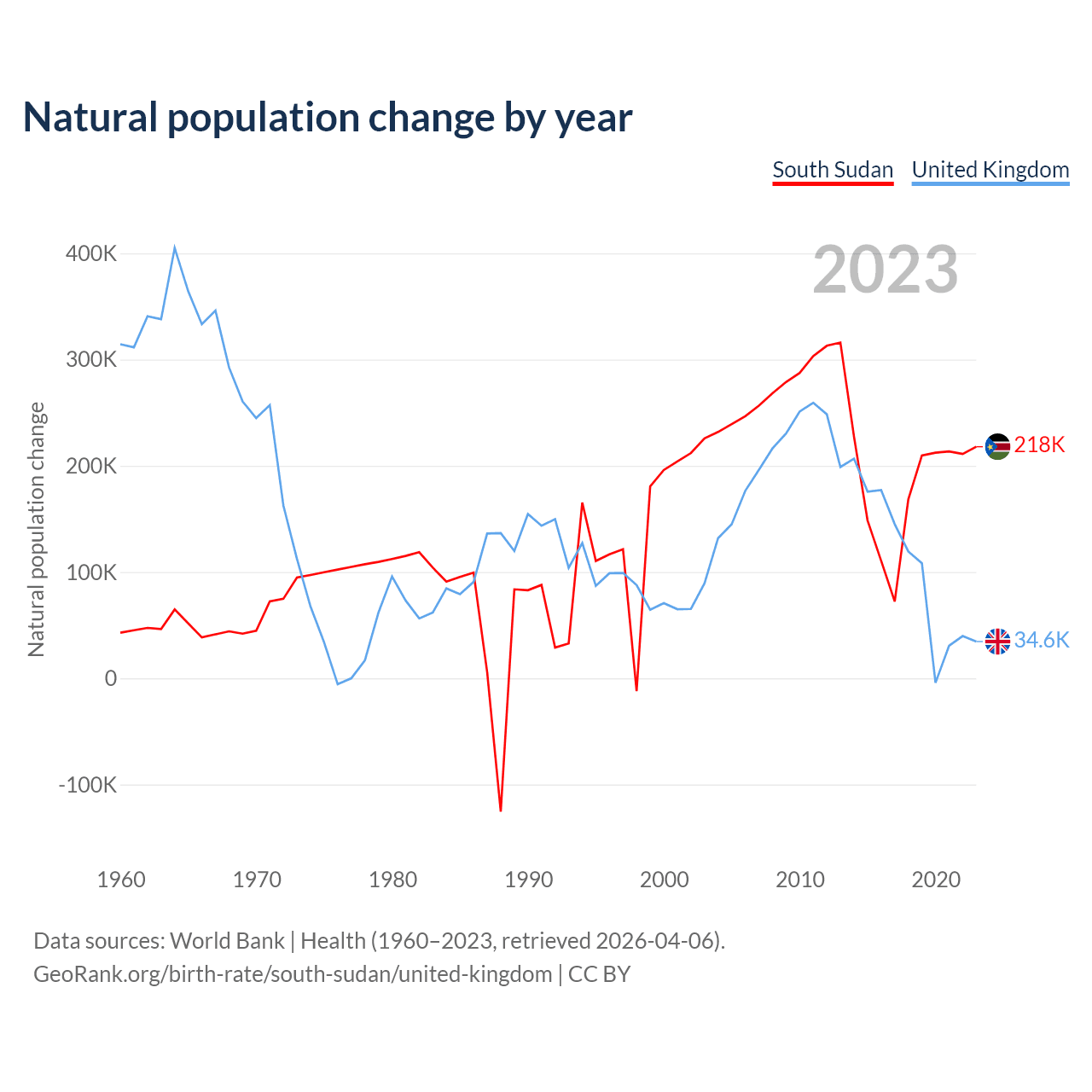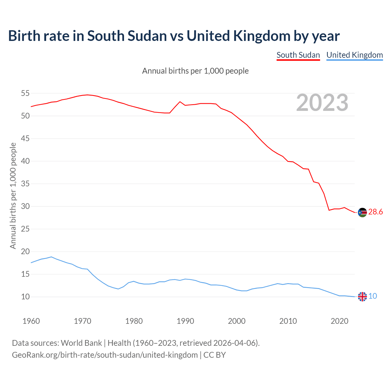 GeoRank.org/birth-rate/south-sudan/united-kingdom | CC BY