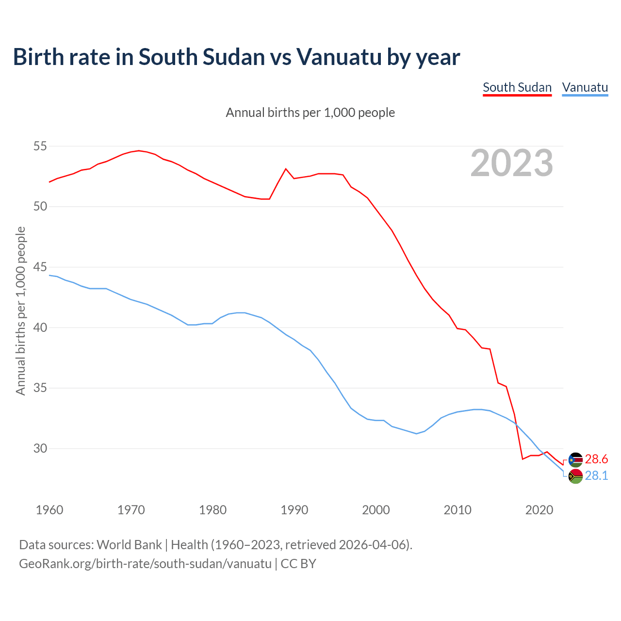 GeoRank.org/birth-rate/south-sudan/vanuatu | CC BY