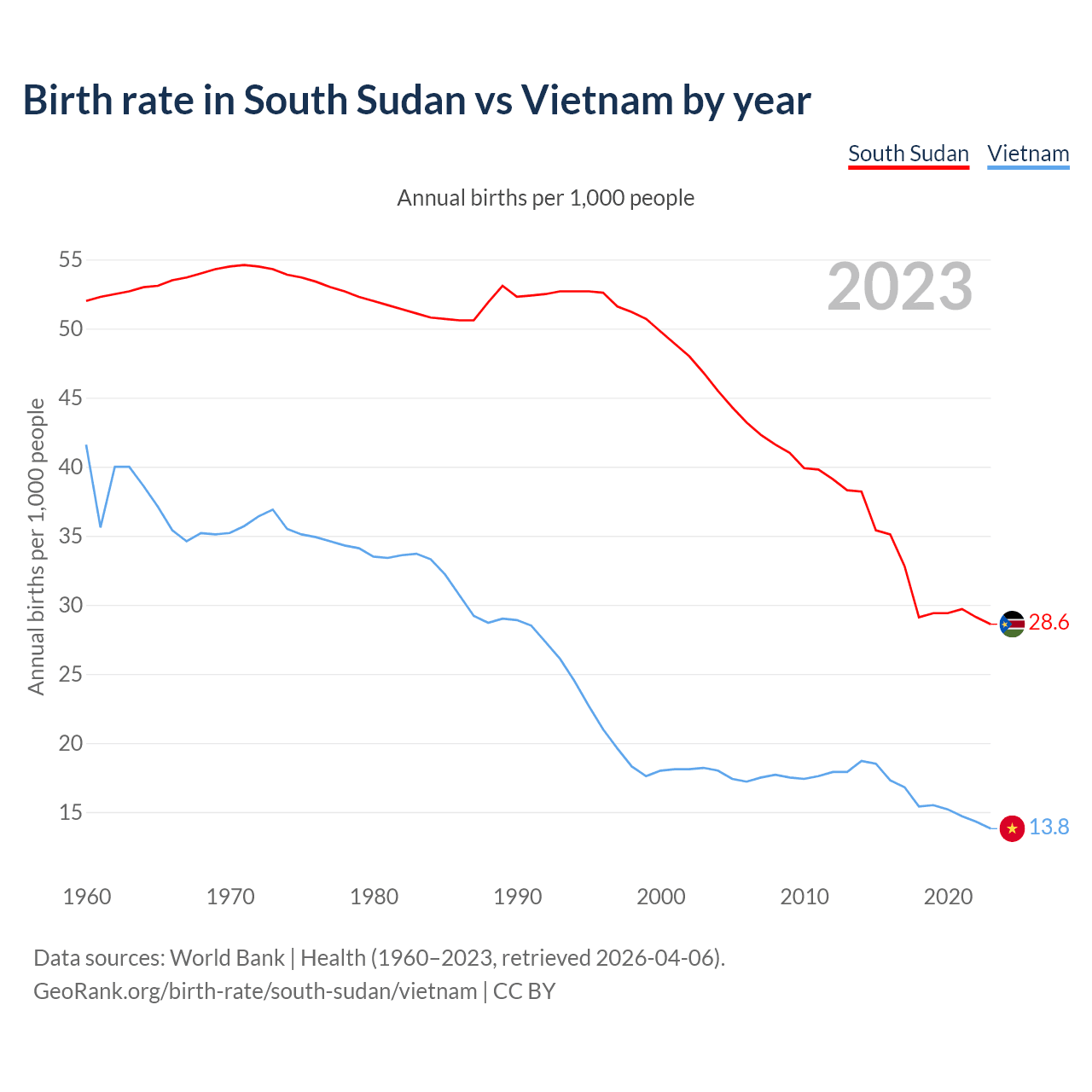 GeoRank.org/birth-rate/south-sudan/vietnam | CC BY