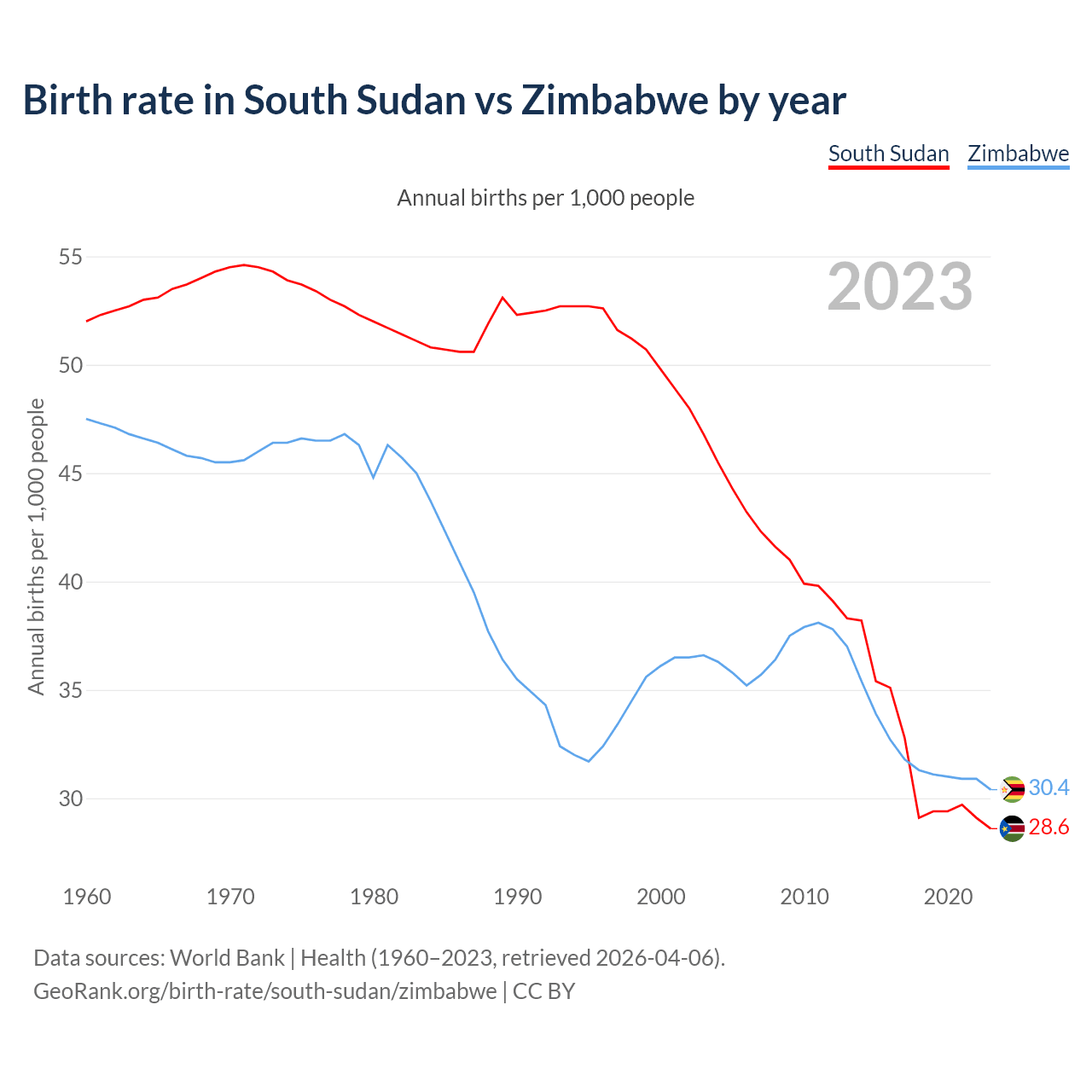 GeoRank.org/birth-rate/south-sudan/zimbabwe | CC BY