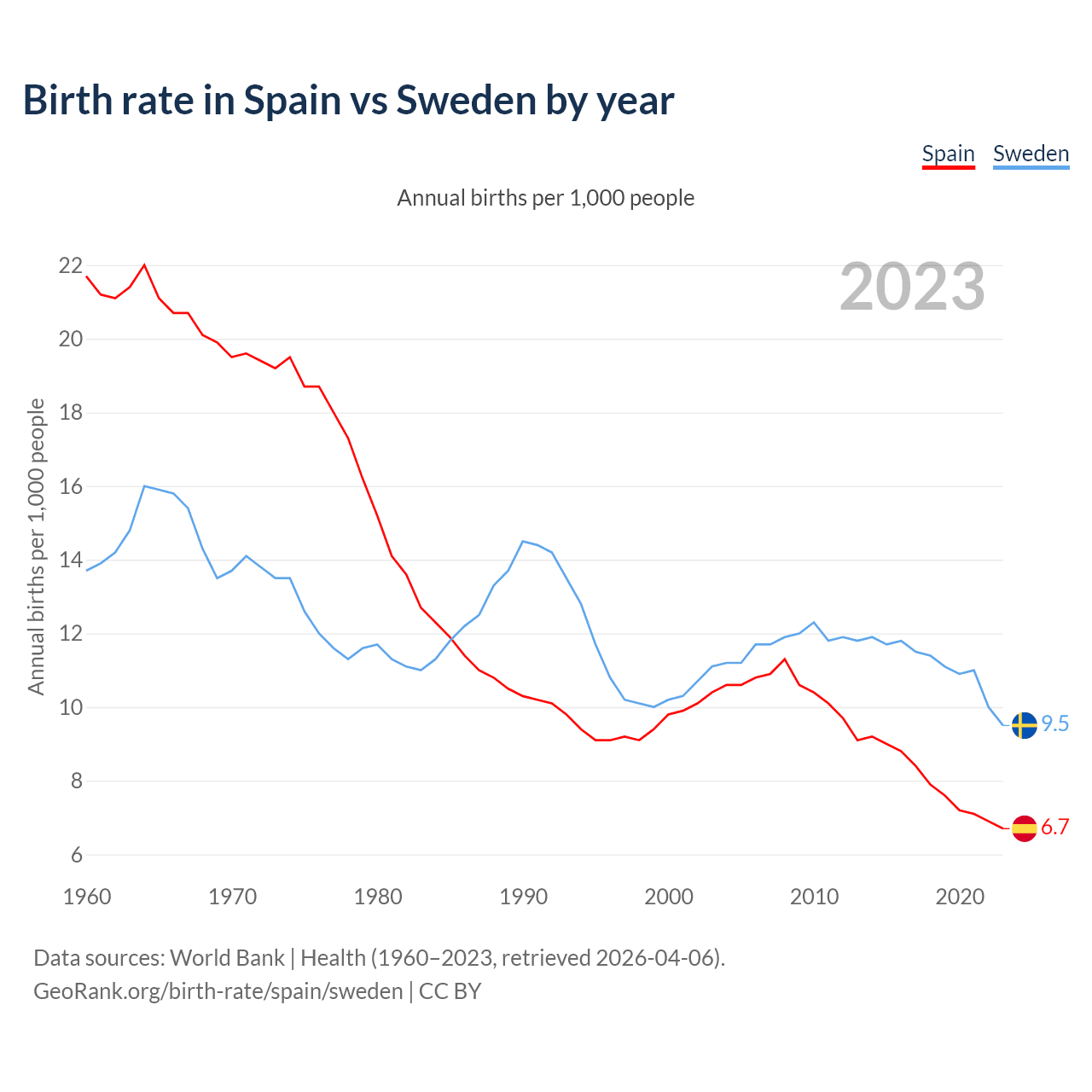 GeoRank.org/birth-rate/spain/sweden | CC BY