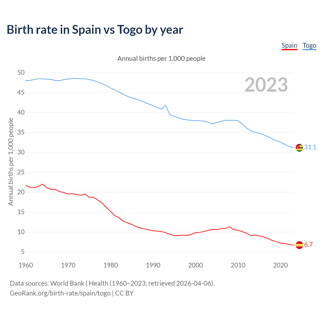 GeoRank.org/birth-rate/spain/togo | CC BY