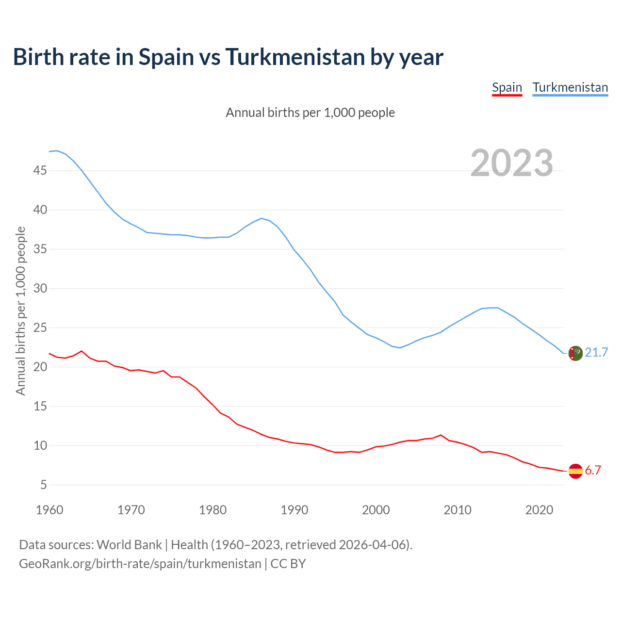 GeoRank.org/birth-rate/spain/turkmenistan | CC BY