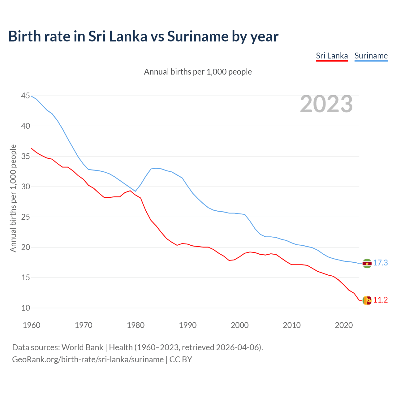 GeoRank.org/birth-rate/sri-lanka/suriname | CC BY