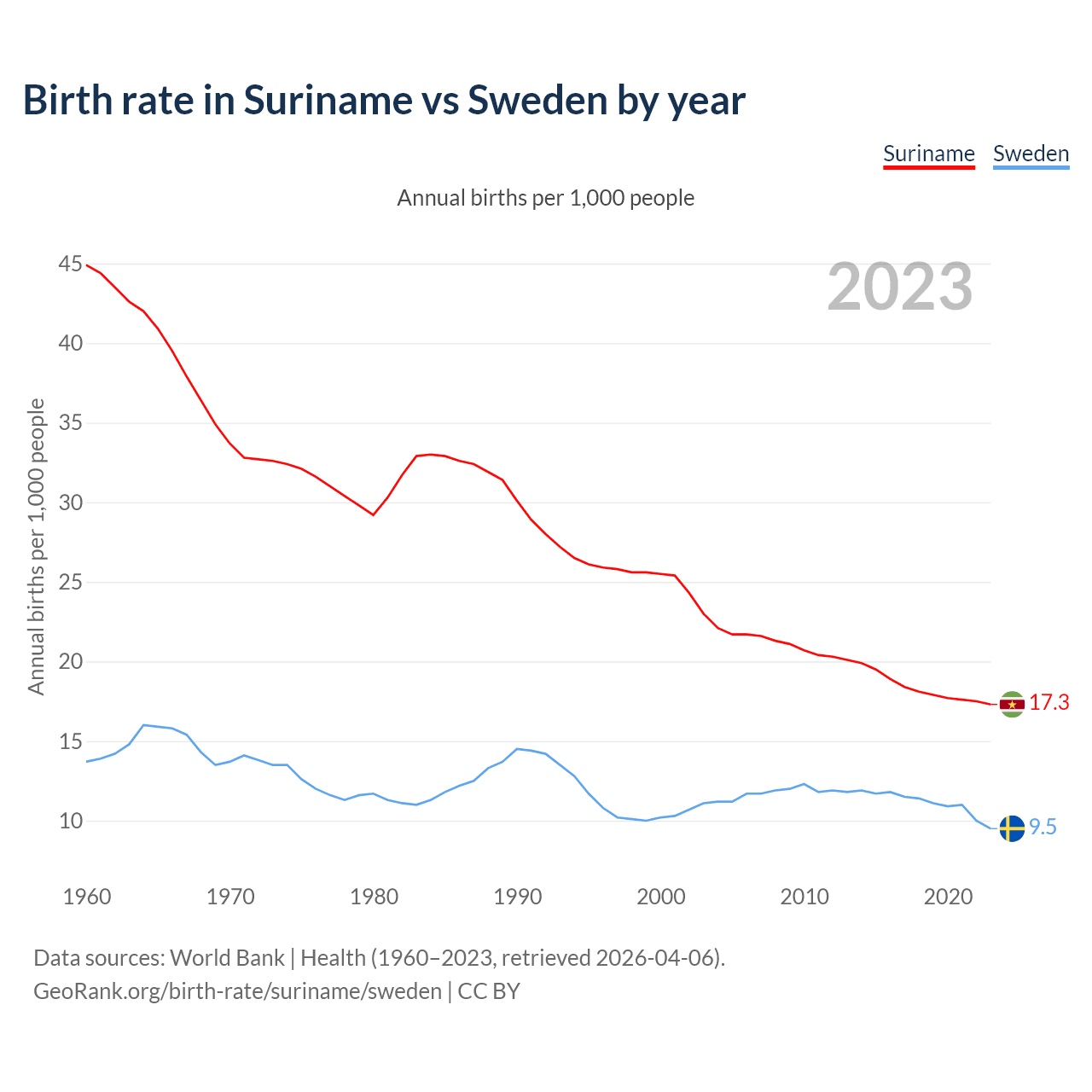 GeoRank.org/birth-rate/suriname/sweden | CC BY