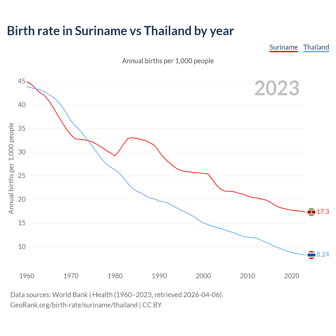 GeoRank.org/birth-rate/suriname/thailand | CC BY