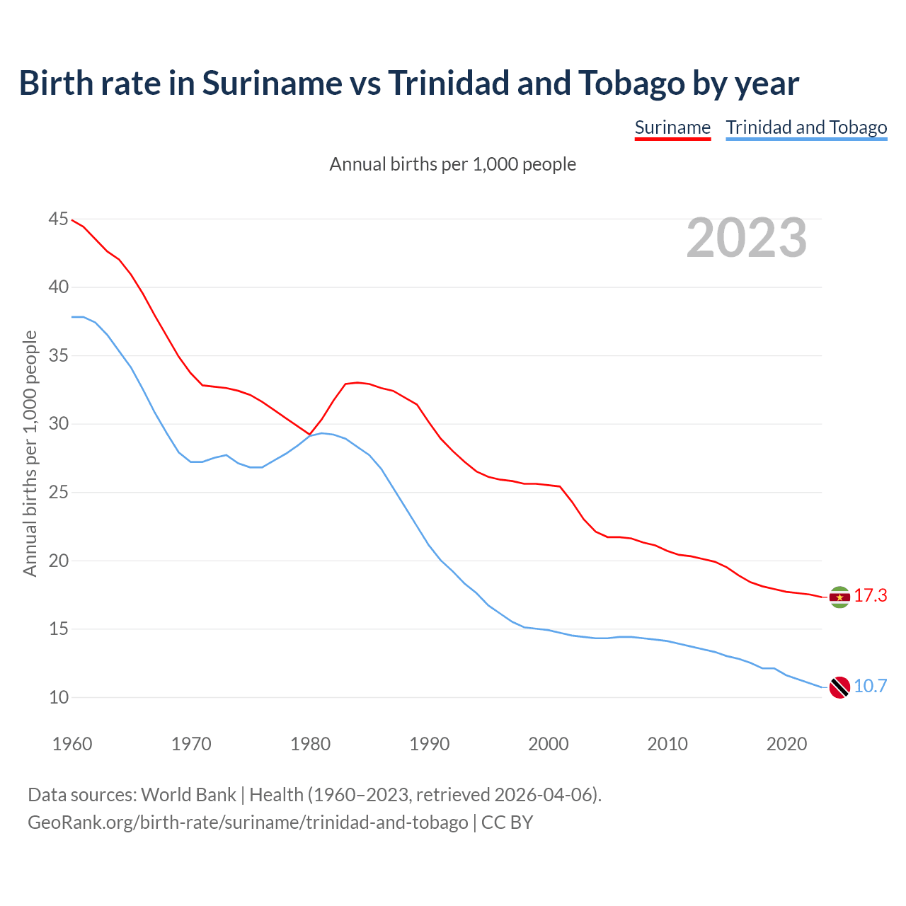 GeoRank.org/birth-rate/suriname/trinidad-and-tobago | CC BY