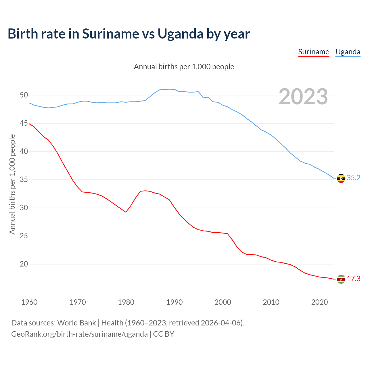 GeoRank.org/birth-rate/suriname/uganda | CC BY