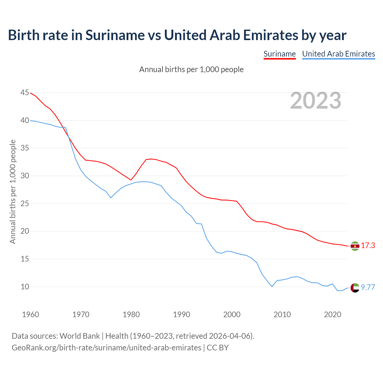 GeoRank.org/birth-rate/suriname/united-arab-emirates | CC BY