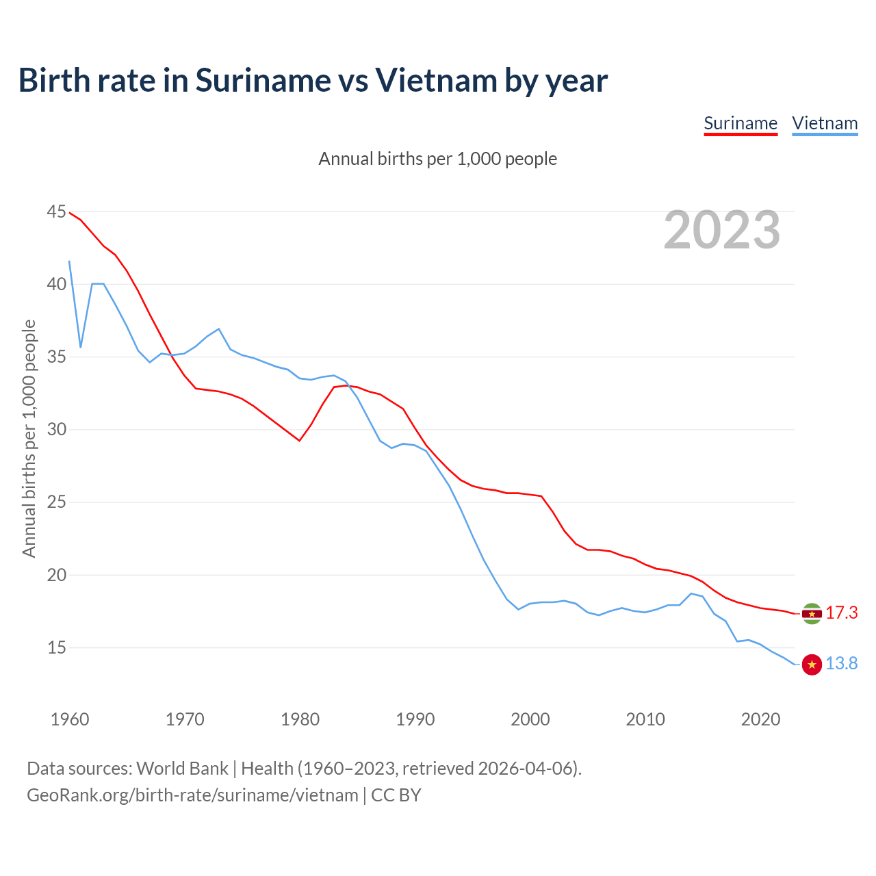 GeoRank.org/birth-rate/suriname/vietnam | CC BY
