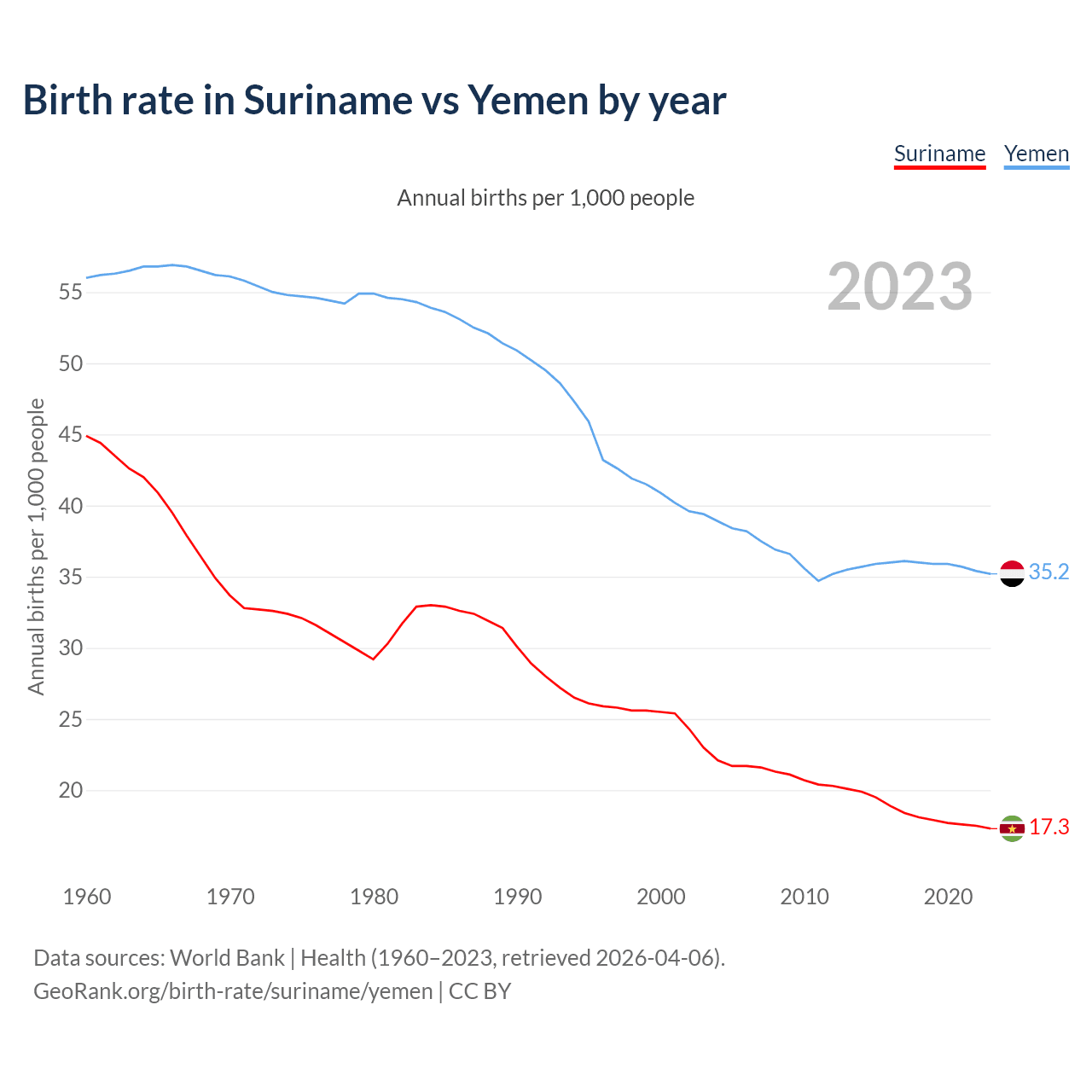 GeoRank.org/birth-rate/suriname/yemen | CC BY