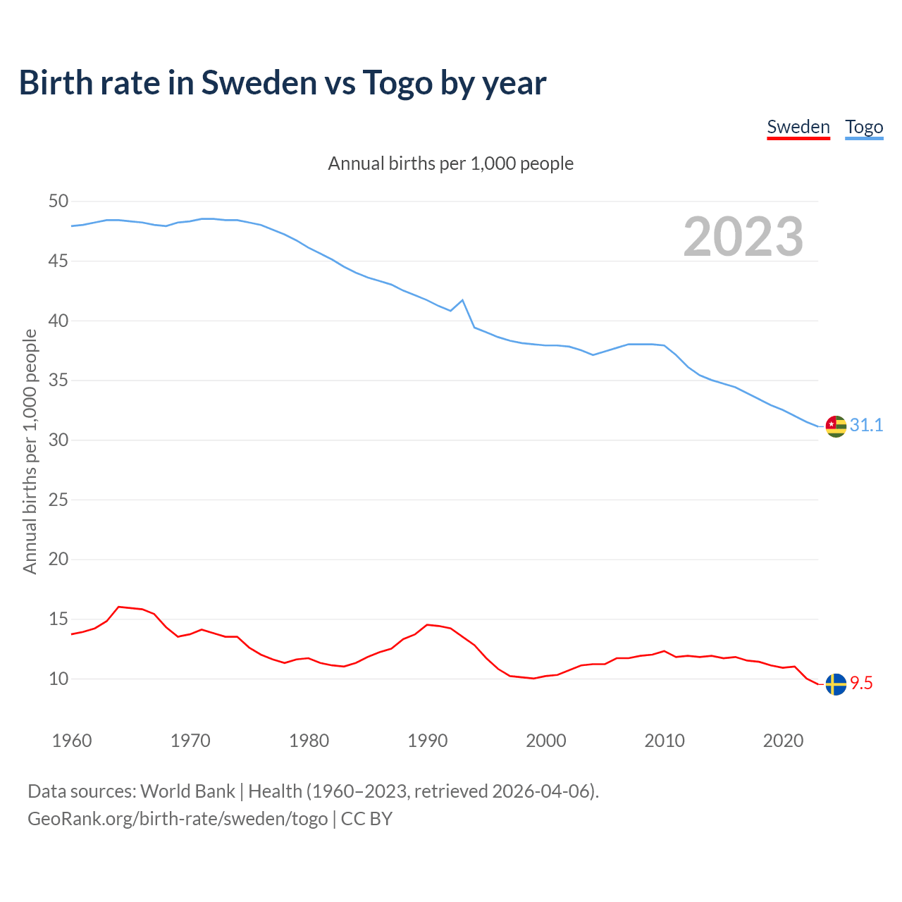 GeoRank.org/birth-rate/sweden/togo | CC BY