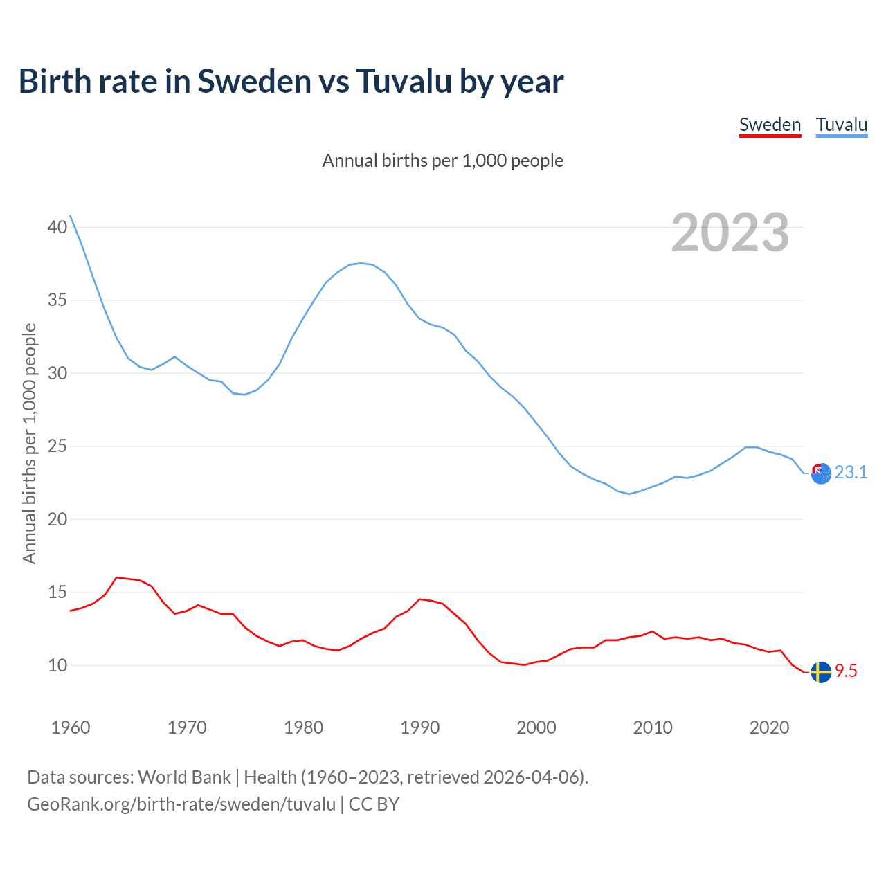 GeoRank.org/birth-rate/sweden/tuvalu | CC BY