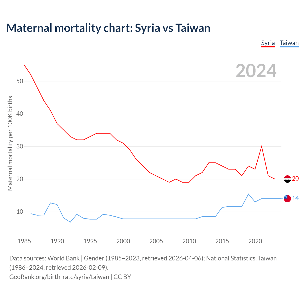 Maternal mortality chart: Syria vs Taiwan