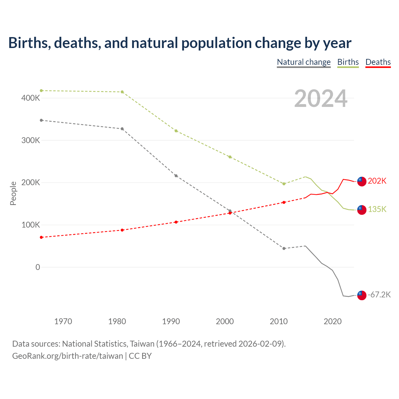 Data sources: National Statistics, Taiwan (1951–2024, retrieved 2026-02-09).