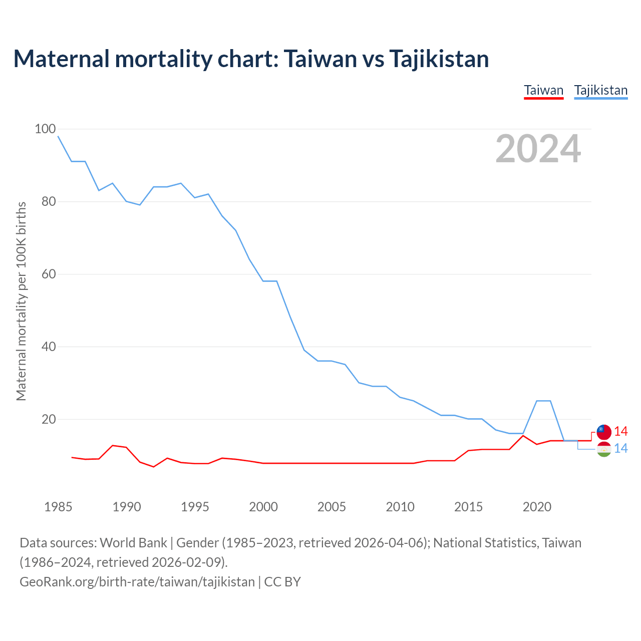 Maternal mortality chart: Taiwan vs Tajikistan