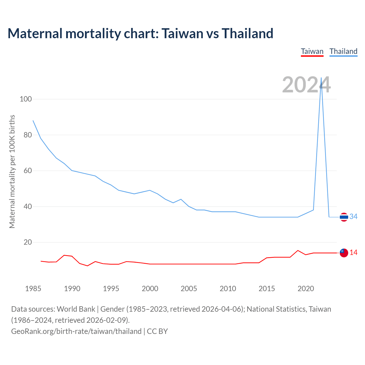 Maternal mortality chart: Taiwan vs Thailand