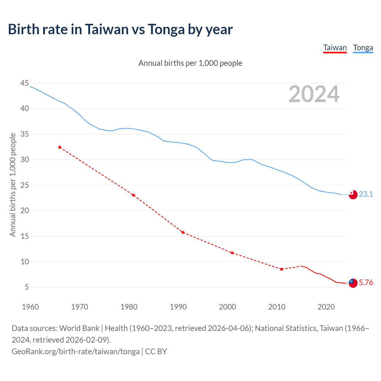 GeoRank.org/birth-rate/taiwan/tonga | CC BY