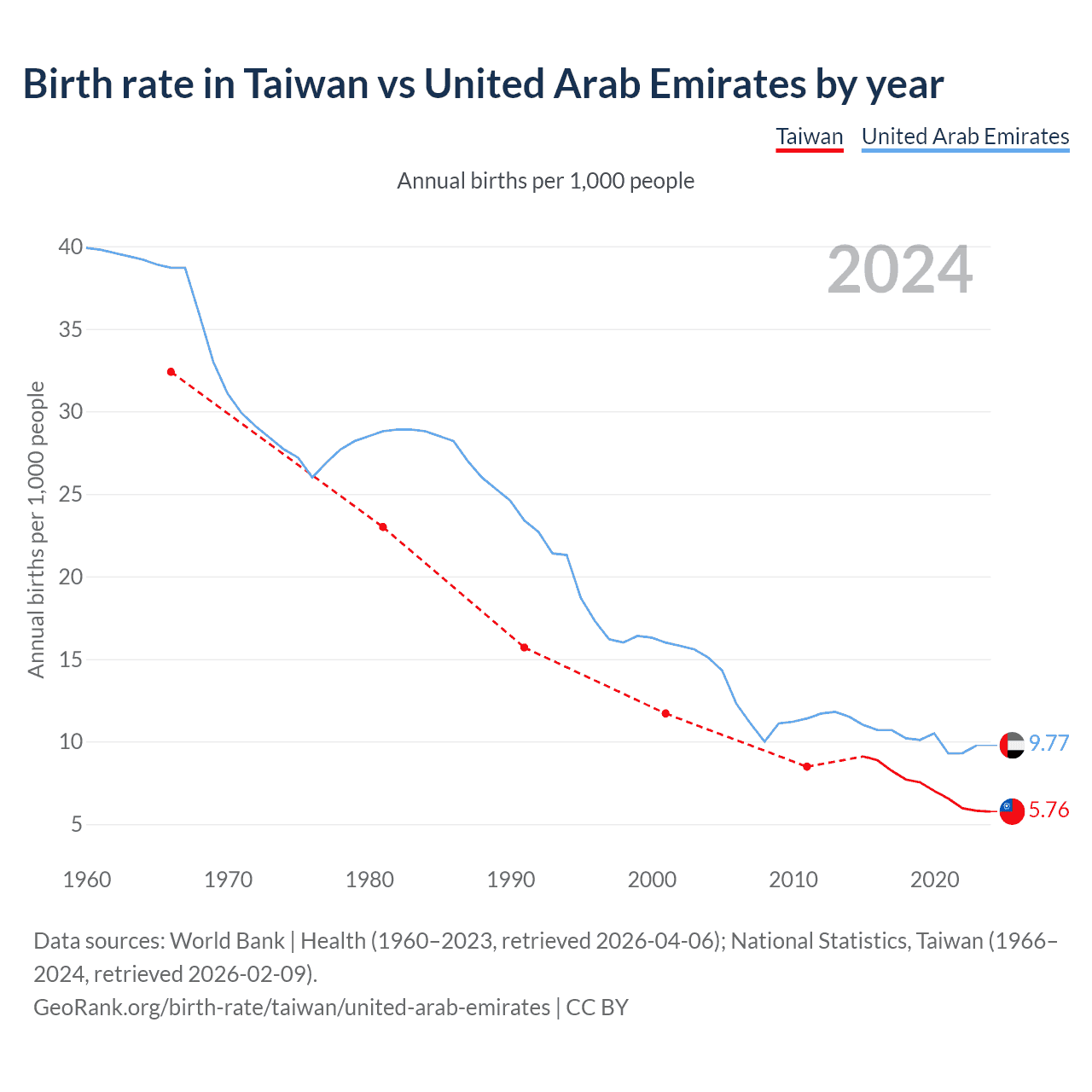 GeoRank.org/birth-rate/taiwan/united-arab-emirates | CC BY