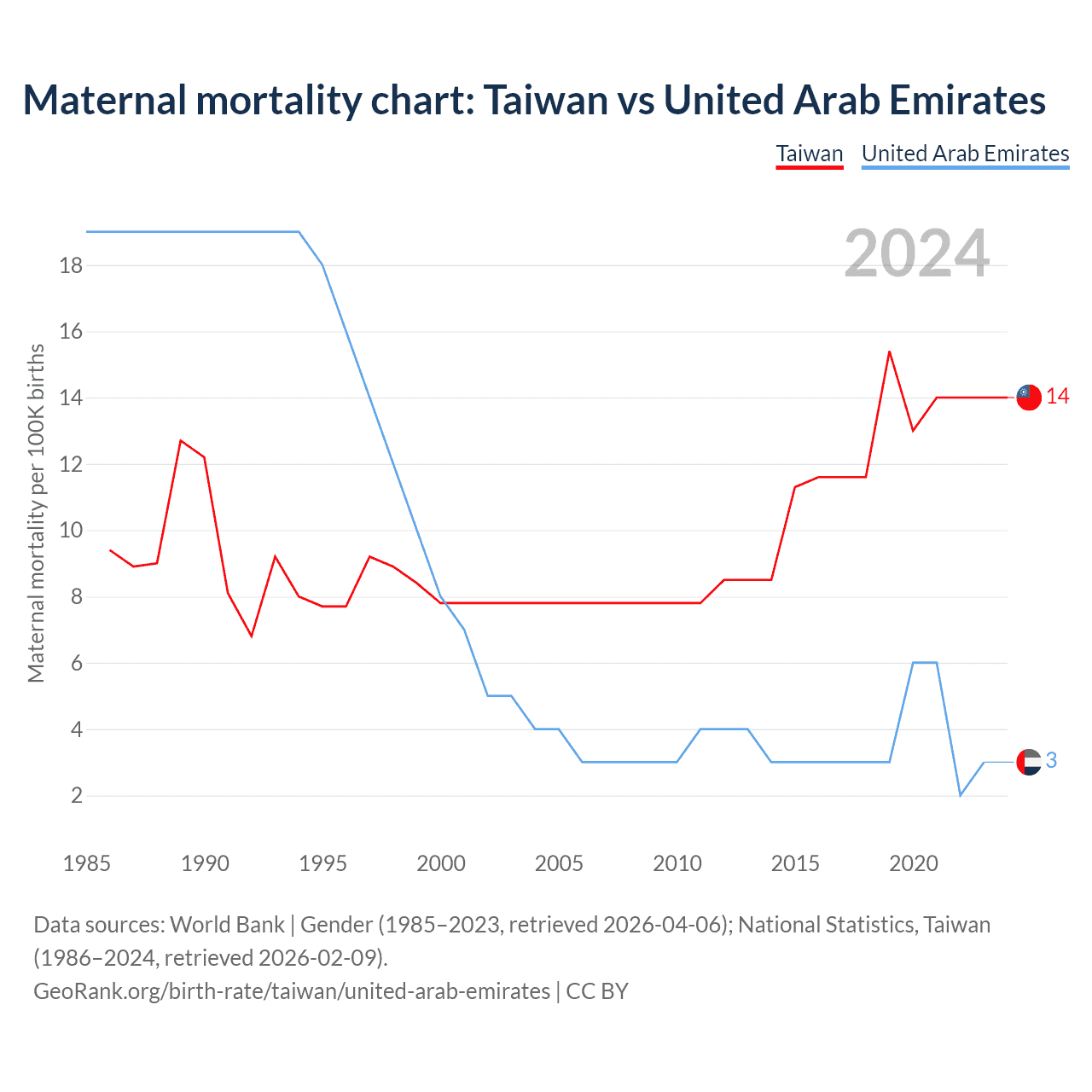 Maternal mortality chart: Taiwan vs United Arab Emirates