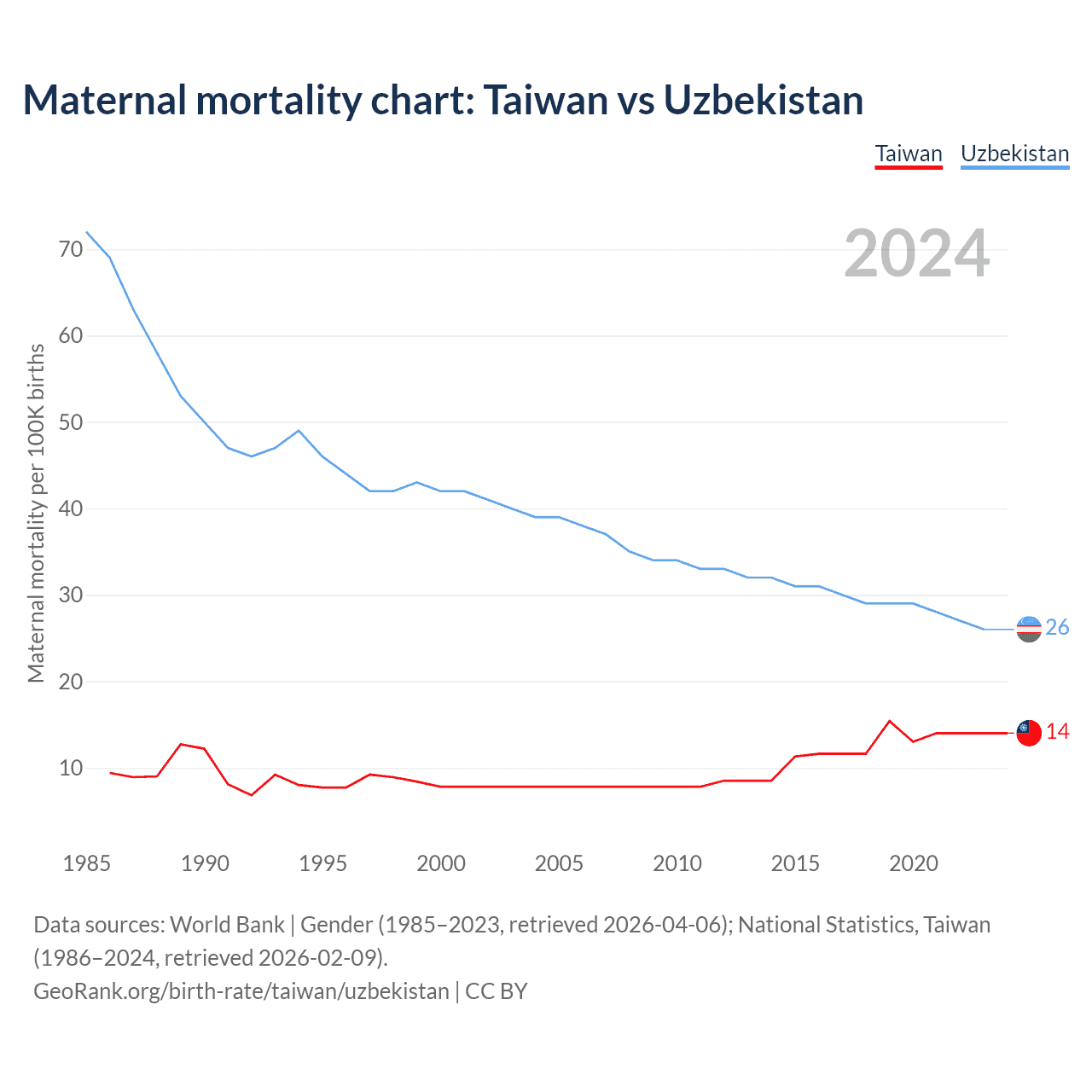 Maternal mortality chart: Taiwan vs Uzbekistan