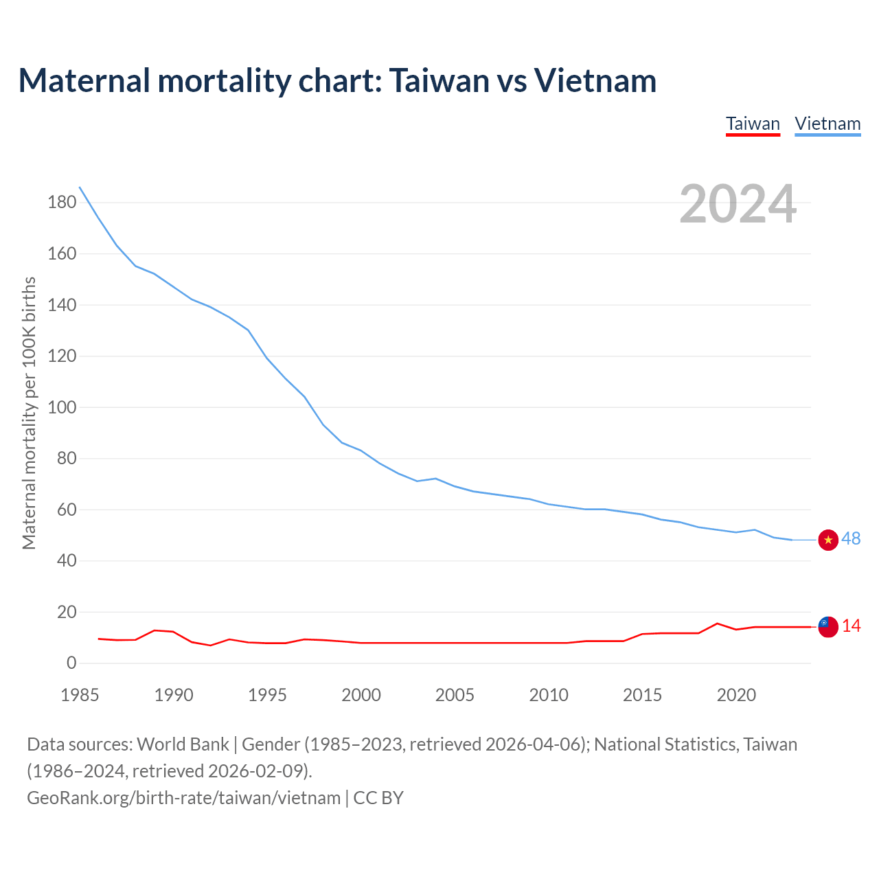 Maternal mortality chart: Taiwan vs Vietnam