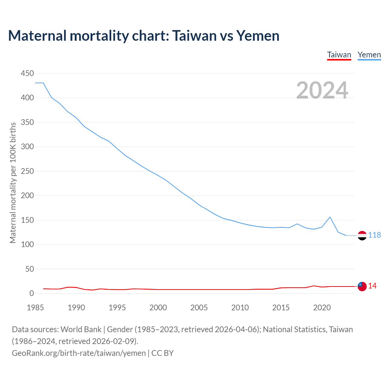 Maternal mortality chart: Taiwan vs Yemen