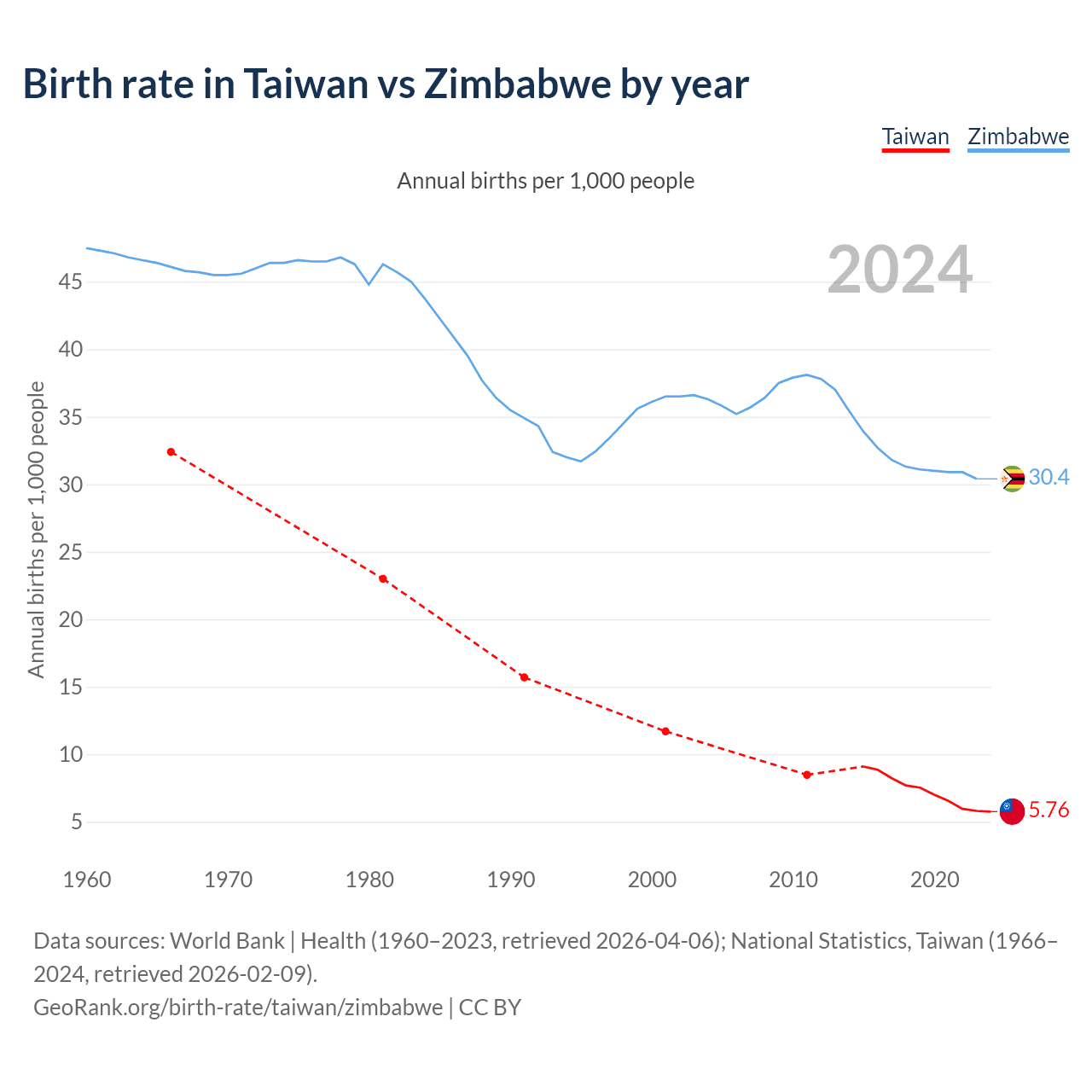 GeoRank.org/birth-rate/taiwan/zimbabwe | CC BY