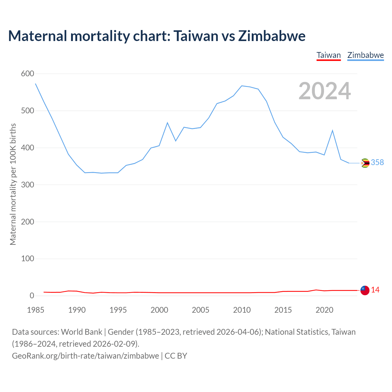 Maternal mortality chart: Taiwan vs Zimbabwe