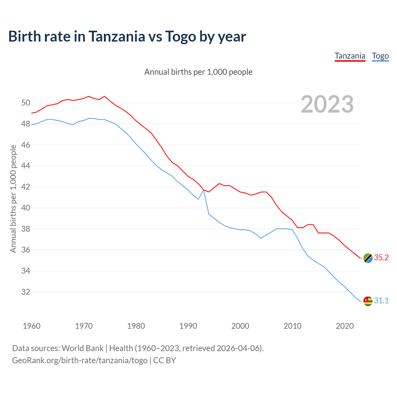 GeoRank.org/birth-rate/tanzania/togo | CC BY