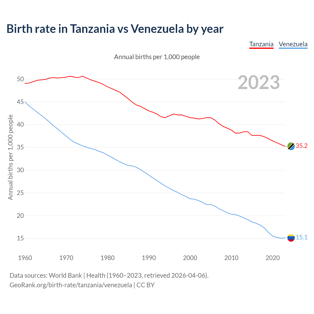 GeoRank.org/birth-rate/tanzania/venezuela | CC BY