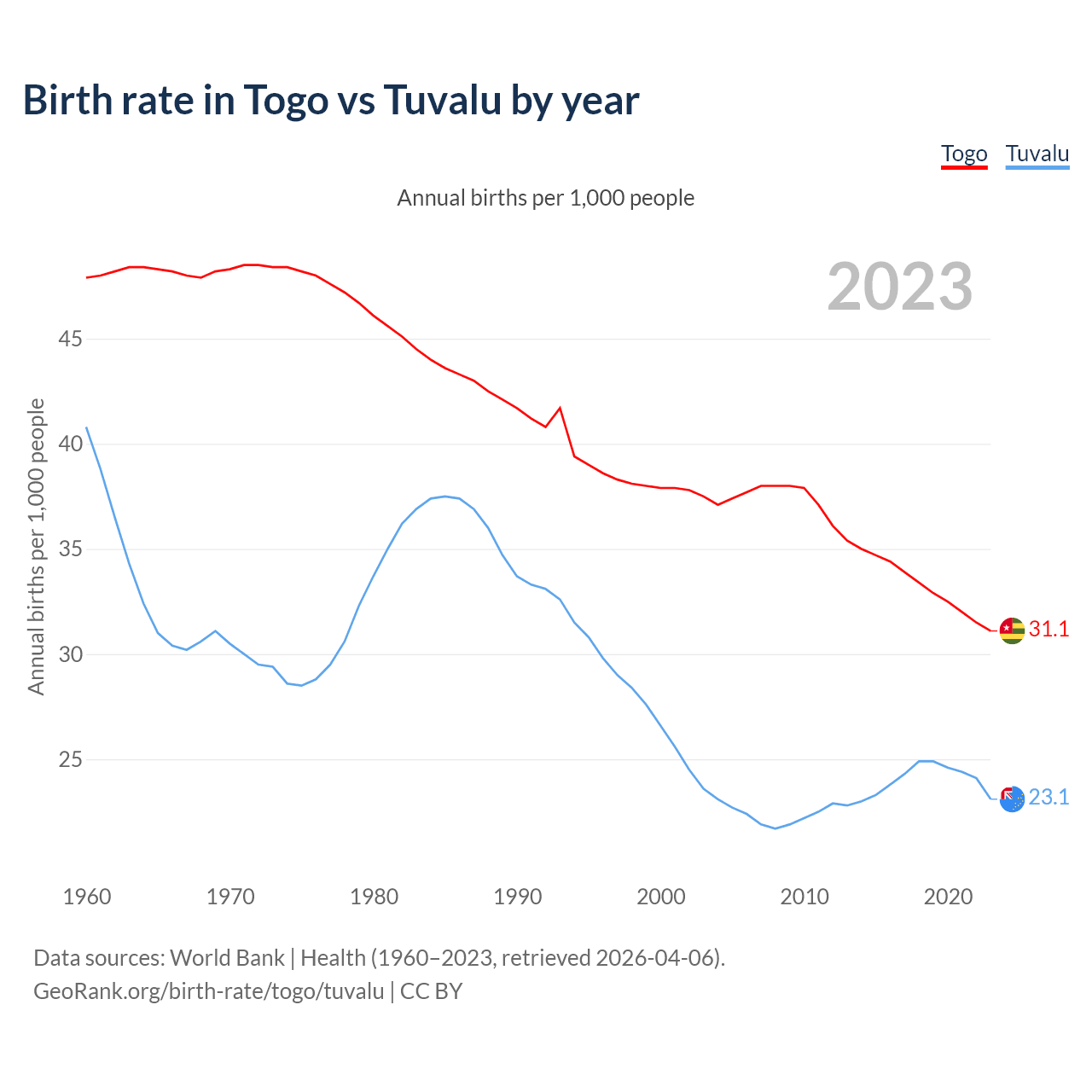 GeoRank.org/birth-rate/togo/tuvalu | CC BY